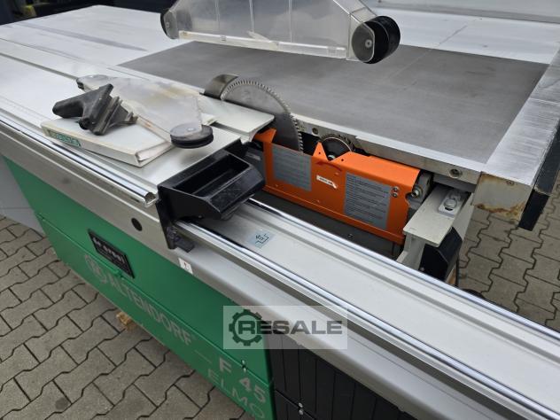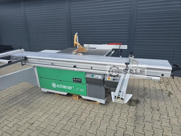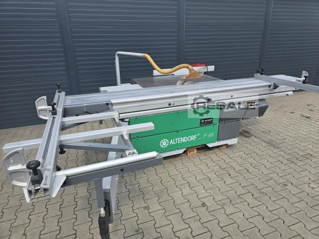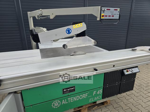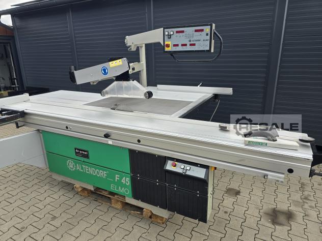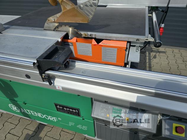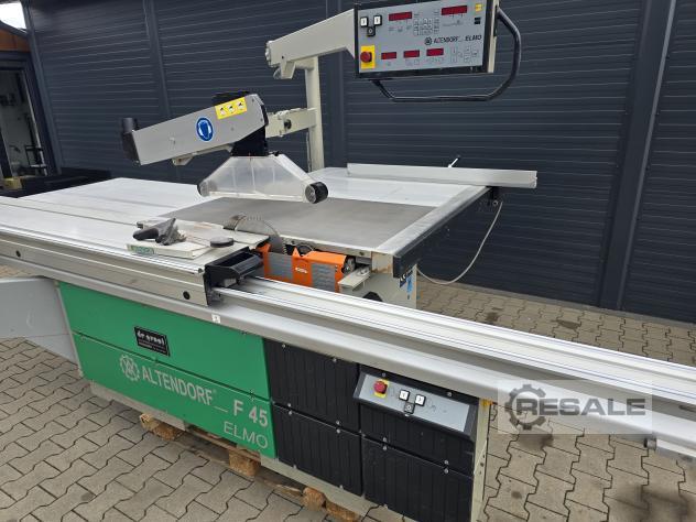 Kayar tablalı testere ALTENDORF F45 -kullanılmış çift araba, döner, ince ayarlı yarma çiti, bom tablası, masa uzatma eloksallı alüminyum, masa uzatma eloksallı alüminyum, açılı gönye dayanağı, üst koruyucu kapak dar ve geniş---------- Teknik veriler ----------dönme aralığı: 45 Â, taşıyıcı uzunluğu: 2.500 mm, kesme genişliği: 800 mm, maks.testere bıçağı Ã: 450 mm, motor gücü: 5,5 kW, emme nozulu Ã: 80 / 120 mm