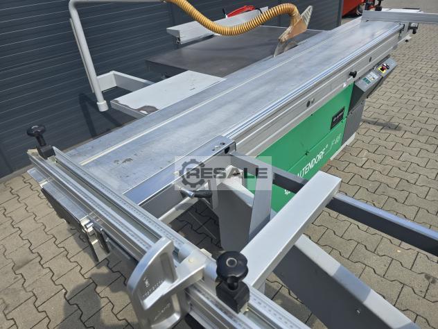 Kayar tablalı testere ALTENDORF F 25, tip 1 sergi makinesi çift arabalı döner adam. Yükseklik ve dönme ayarı Adam ile çit yırtın. İnce ayar açısı gönye durdurucu Davlumbaz büyük puanlama LED aydınlatmalı temel ---------- Teknik veriler ---------- Dönme aralığı: 0 - 46 Â taşıma uzunluğu: 3.200 mm Kesme mesnedi: 1.000 mm Kesme yüksekliği: 100 mm testere bıçağı Ã: 315 mm Boy kesme çiti uzatılabilir: 3.450 mm Hızlar: 3.600 / 4.200 rpm Motor gücü: 5,5 kW (7,5 hp) Ar