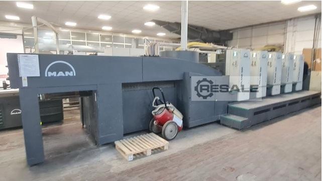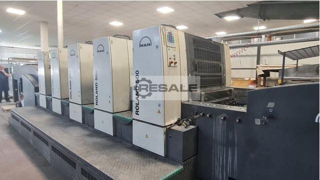 Man Roland R 504 OB - PLV (4/0 – 2/2) Year: 2007 Impressions: 205 million Premium speed: 18,000 sheets/hour Sheet size: 530 x 740 mm Stock thickness: 0.06 – 0.6 mm Roland Deltamatic dampening system Technotrans combi cooling unit for ink and water Combi Control PPL power plate loading Automatic ...