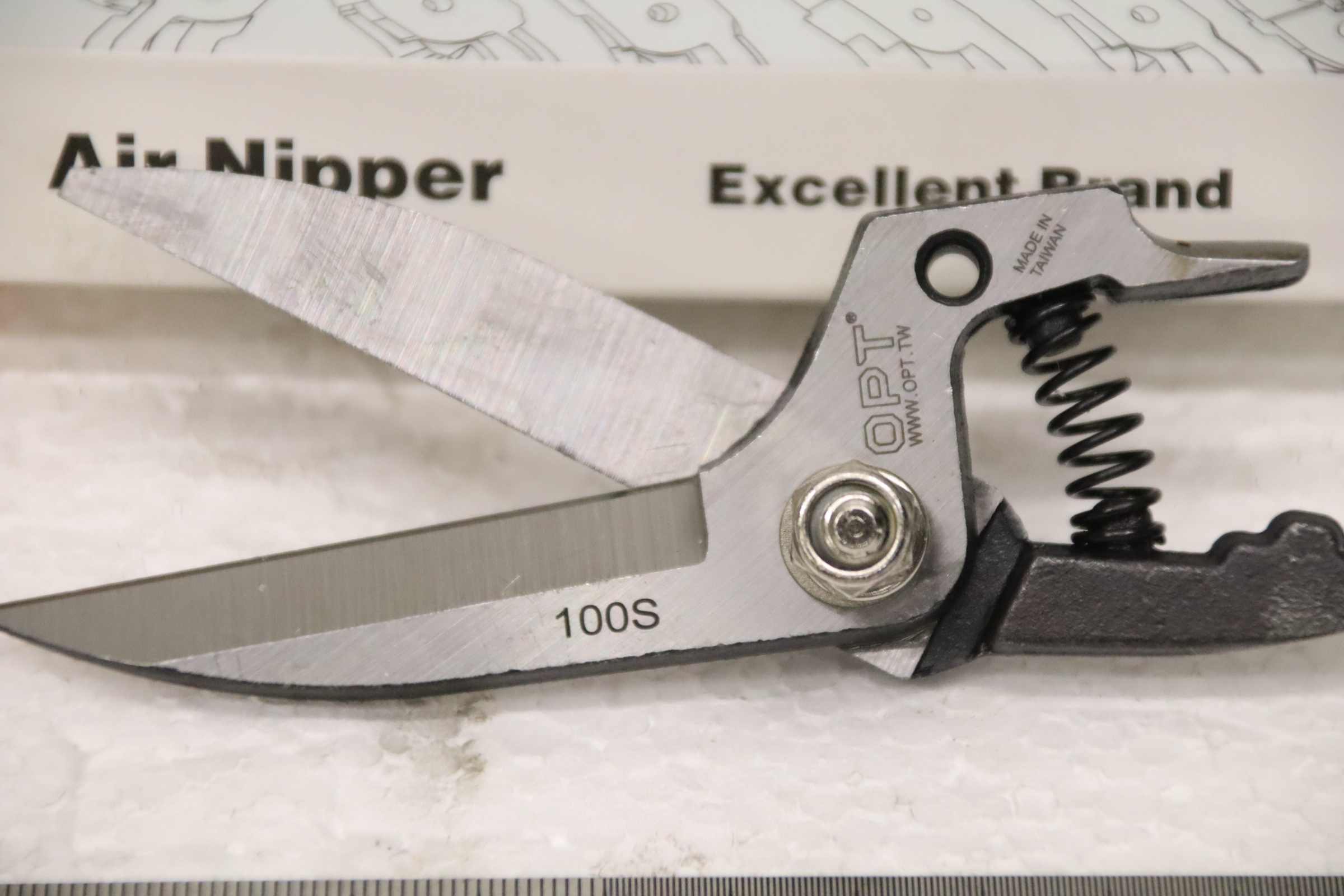 Scissors, pneumatic scissors, air cutters, wire cutting scissors -Manufacturer: OPT, Replacement blades for pneumatic shears, unused, original packaging -Type: 100S -Cutting length: see photo -Quantity: 4x replacement blades available -Price: per piece -Cardboard dimensions: 160/50/H30 mm -Weight: ...