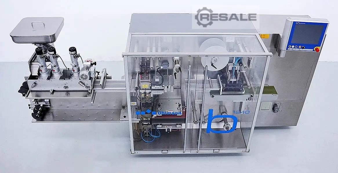 BLISTER MAKINESI UHLMANN B1240 Tablet, kapsül gibi çeşitli ürün türlerinin üretimi için otomatik blister makinesi. Fırça besleyicisi, çeşitli format setleri ve yedek parçalar ile. PVC/ALU su toplamalarını işleyebilir. 2007 yılında inşa edildi. - PLC: B&R, tip Otomasyon PC - ...