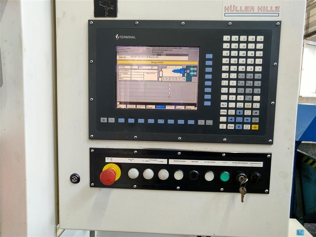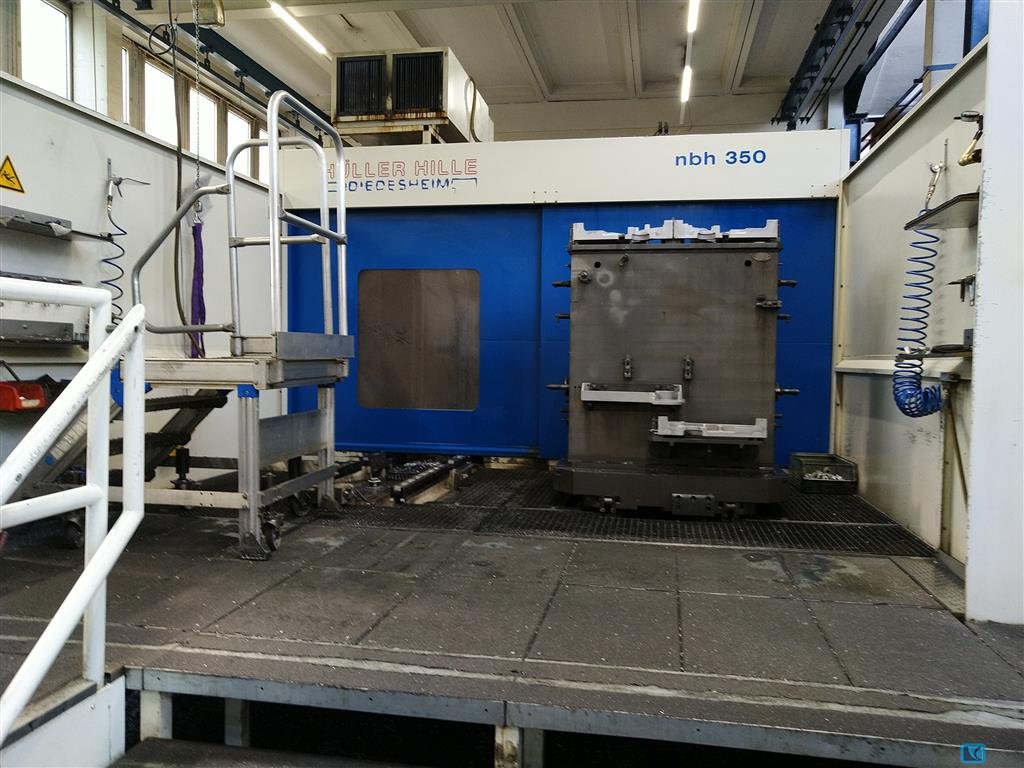 4 eksenli CNC yatay freze makinesi Hüller Hille BlueStar5, üretim yılı 2007 her biri 4 mengeneli 2 değiştirilebilir paletli otomatik palet değiştirici (125), 4 ek değiştirilebilir palet (biri mineral döküm sıkıştırma kuleli), Renishaw ölçüm sistemi, ek filtre cihazlı yüksek basınçlı soğutma sıvısı sistemi, iş mili boyunca soğutma sıvısı ve hava, 40 katlı takım magazini BT40, Çalışma saatleri ve kontrol fotoğrafa bakın