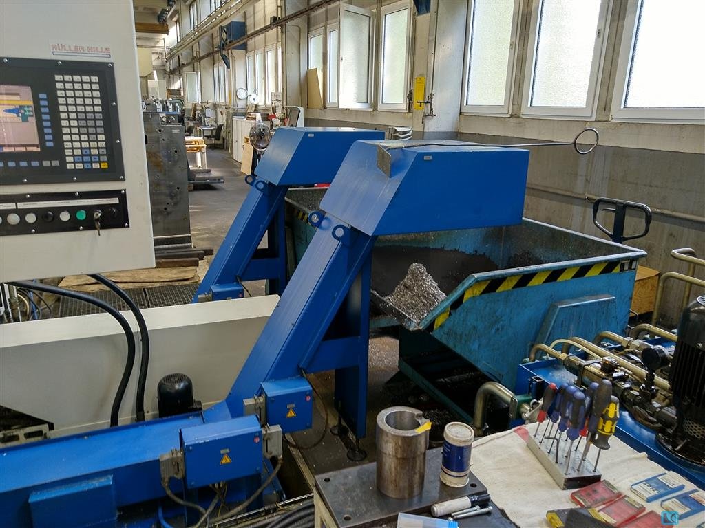 x-travel: 800 mm y-travel: 630 mm z-travel: 800 mm Control: Siemens type: 840 D size of pallet: 500x630 mm numbers of pallets: 8 : 360 ° turning speeds: 6000 U/min Table load: 800 kg spindle taper ISO: 50 Tool changer: Pos. chip conveyor: Feed: 1-36000 mm/min Cooling through the spindle: 50 bar total power requirement: kW weight of the machine ca.: 19,5 t dimensions of the machine ca.: 8x7x4,2 m The data for this ad was created with ModulMWS - the software solution of LogoTech oHG.