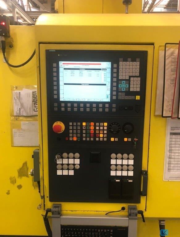 weight of the machine ca.:24 t dimensions of the machine ca.:3900 x 3500 x 2500 m -the machine has no B axis -two grinding spindles with one grinding wheel each - The transport instructions can be found in the documentation (attachment). including Hoffmann KSM filter system Loading list available Operating data v. 03/27/2023: Operating time: 21727 h / production time: 11960 h Machine documentation: 1 set of circuit diagrams, electrical plans, operating instructions Accessories: 2 replacement measuring heads Marposs S/500; prism supports Other: Hoffmann KSM filter system Machine condition: according to age, due to processing with emulsion