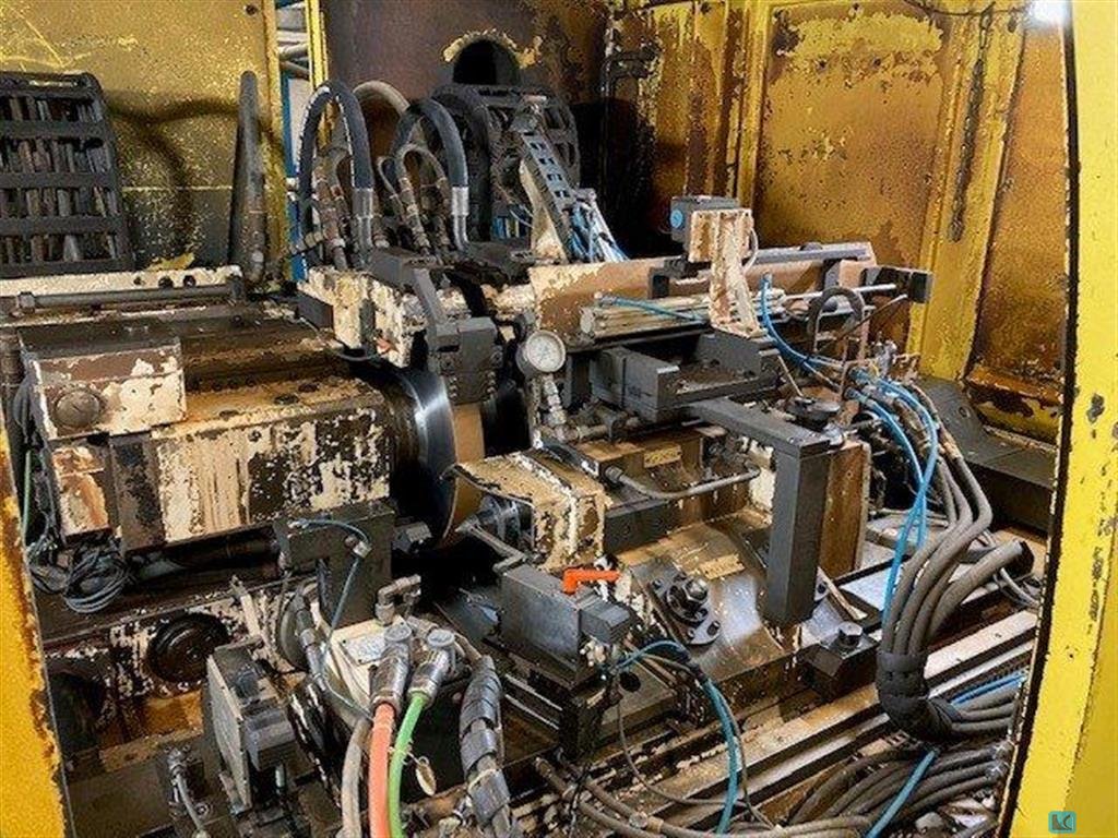 workpiece length: 100 mm swing diameter: 80 mm number of spindles: 2 Control: FANUC 31i-B5 workpiece weight: 2,00 kg centre height: 170 mm grinding wheel diameter: 100 mm grinding wheel hole diameter: 32 grinding wheel width max.: 20 peripheral speed: max. 125 m/sec passage of steadyrest: 45 - 60 mm total power requirement: 75,00 kW weight of the machine ca.: 25,00 t dimensions of the machine ca.: 5,00 x 3,50 x H3,50 m Cam grinding machine for Cam-Pieces with FANUC 31i-B5 control, loading/unloading unit, CO2 extinguishing system, for CBN grinding wheel, tailstock, steady, diamond wheel dresser mounted on the dressing spindle, Wheelhead variant 12 (two grinding spindles can be moved separately). The data for this ad was created with ModulMWS - the software solution of LogoTech oHG.