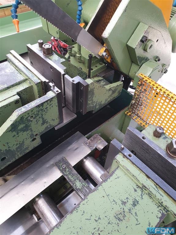cutting diameter: 250 mm band length: 400 mm capacity 90 degrees: square: 220 x 220 mm capacity 90 degrees: flat: 250 x 130 mm cutting speed: 11/19/32 m/min total power requirement: 2 kW weight of the machine ca.: 400 Kg dimensions of the machine ca.: 1700 x 550 x 1270 mm Hydraulic hacksaw with: - Electric-hydraulic raising and lowering of the saw frame - Coolant system - Good condition - Saw blades -- Saw blade dimensions 400 x 45 x 2.0 mm - Max. opening width of the vice 405 mm - Adjustable stroke speeds and cutting speeds - Mitre-adjustable vice The data for this ad was created with ModulMWS - the software solution of LogoTech oHG.