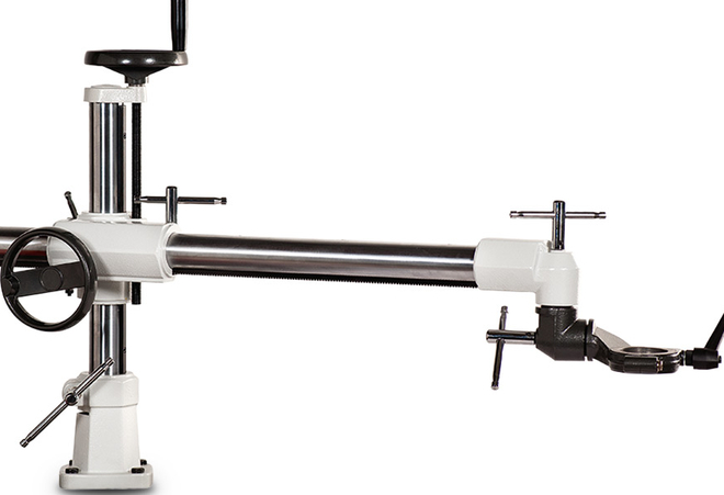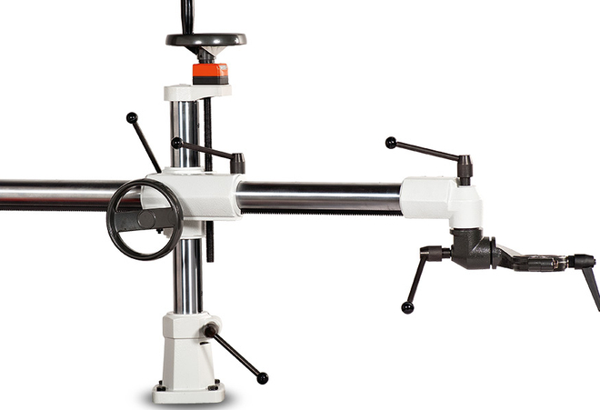 ! Exhibition Machine Corresponds to the Panhans LLB116 with the following optional accessories: - Single-lever operation with fine locking - Dial gauge in the handwheel for height adjustment SPECIFICATIONS: - Max. drilling depth 145 mm - Max. elongated hole length 240 mm - Height adjustment 135 mm - Motor power 1.3/1.7 kW - Suction nozzle Ø 100 mm - Machine weight 200 kg