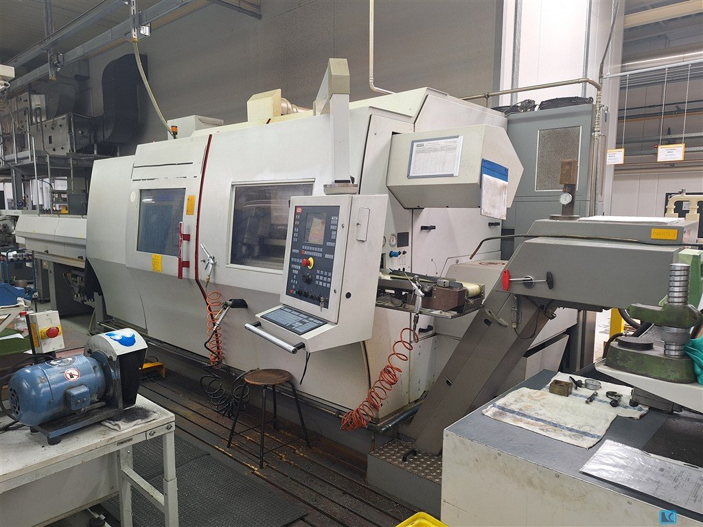 TRAUB TNM 28 sliding head lathe was built in Germany by TRAUB Drehmaschinen GmbH. The machine, which is distinguished by its high efficiency, is the perfect choice for precise, multi-axis machining of workpieces with a maximum length of 200 mm. All machining processes, i.e. drilling, threading and turning, are performed fully automatically inside a large work space. In order to obtain excellent repeatability of the manufactured parts, the TRAUB TNM is equipped with components of the best technical parameters, i.e. two reliable spindles and an 8-position turret. All this is complemented by an easy-to-use CNC controller with many useful functions. The TRAUB TNM 28 CNC automatic lathe weighs approximately 3000 kg. Technical specifications of the TRAUB TNM 28 CNC turning center - feed in the X/Z axis: 60/200 mm - rapid traverse in the X/X2/Z axis: 15/15/30 m/min - driven tool rotationa ...