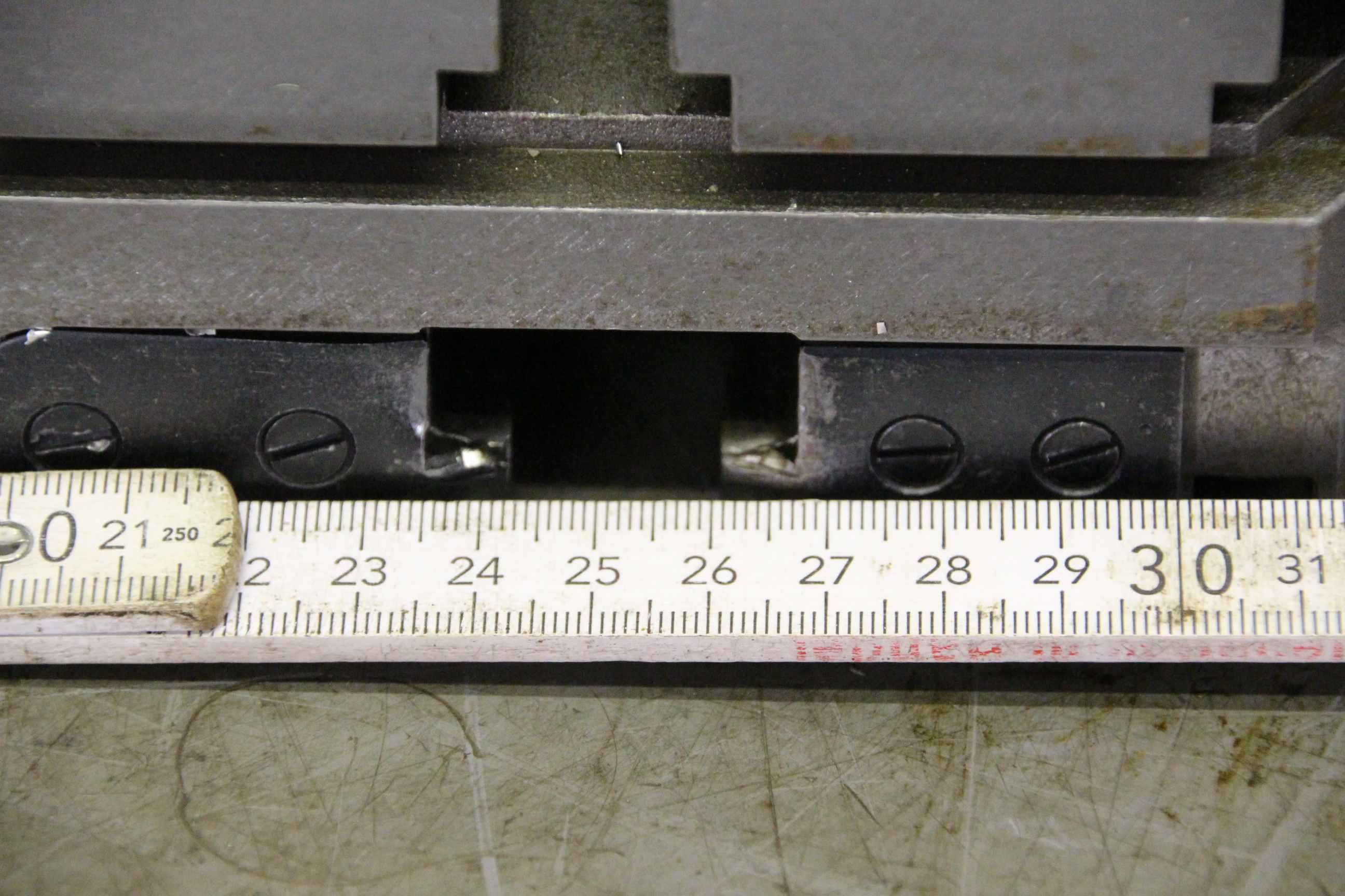 Clamping plate with T-slots and cross table, plate field, welding table, welding table, plate boring machine, T-slot plate, pallet changer, pallet changing system -Clamping plate: with T-slots and clamping devices, comes from a CNC machining center -Width: 500 mm -Length: 400 mm -Groove width: 14 ...