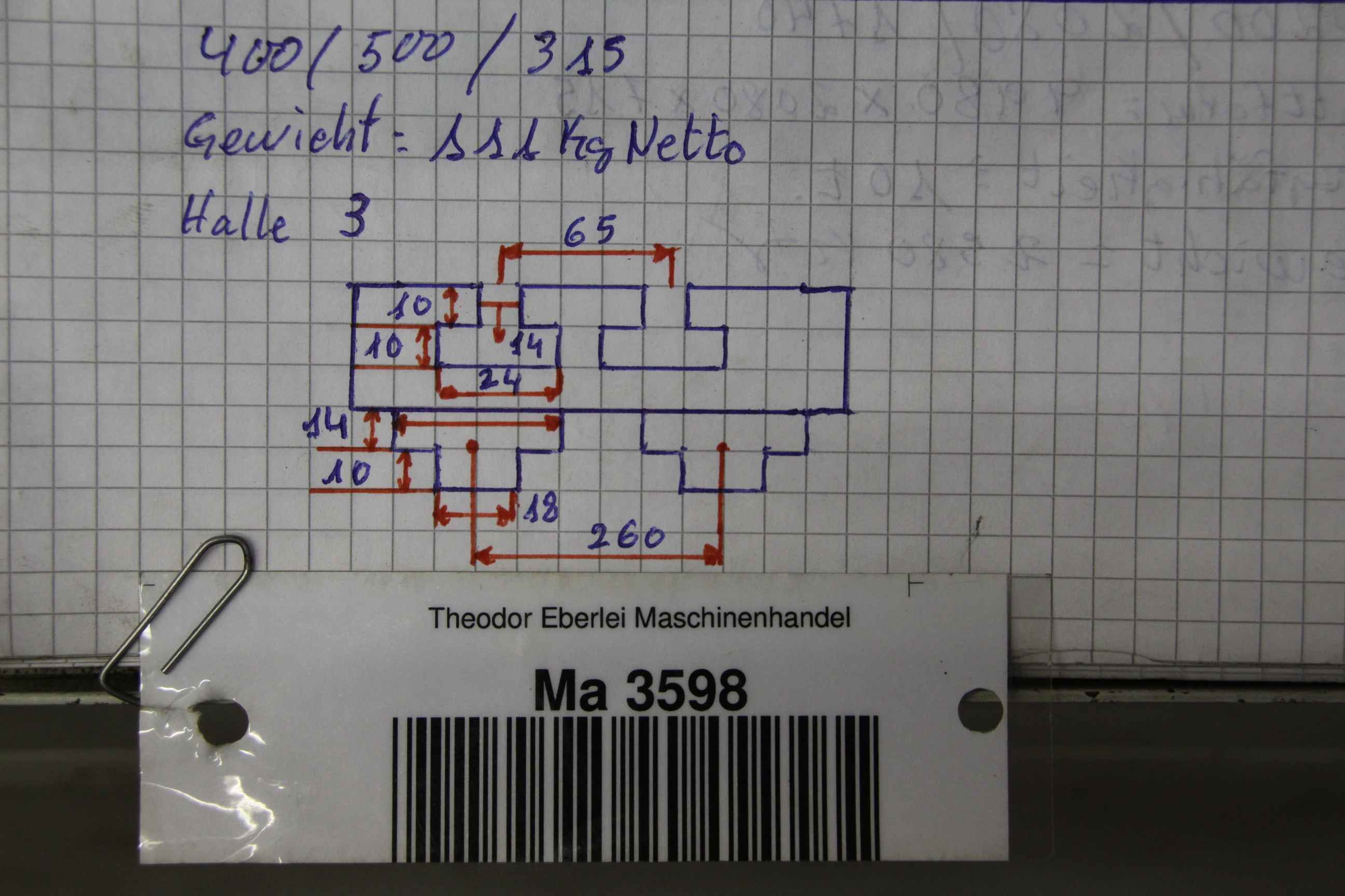 Clamping plate with T-slots and cross table, plate field, welding table, welding table, plate boring machine, T-slot plate, pallet changer, pallet changing system -Clamping plate: with T-slots and clamping devices, comes from a CNC machining center -Width: 500 mm -Length: 400 mm -Groove width: 14 ...