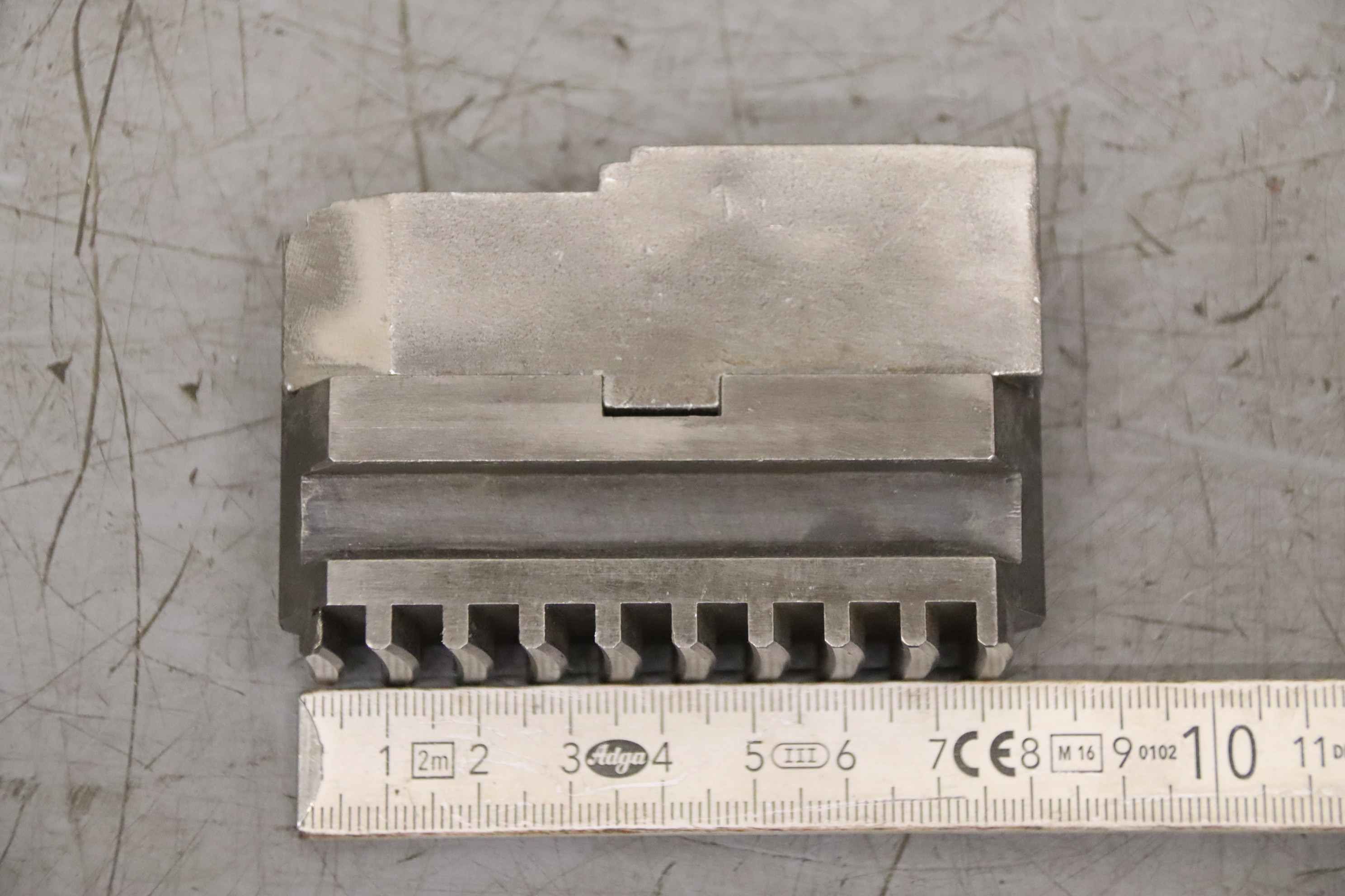 Interchangeable jaws, top jaws, three-jaw chucks, segment jaws, clamping jaws, step block jaws, step top jaws, block jaws, base jaws-Top jaws: Jaw set for three-jaw lathe chucks, soft-Jaw width: 26 mm-Dimensions: see photo technical. drawing-Total dimensions: 83/75/H55 mm-Total weight: 2,0 ...