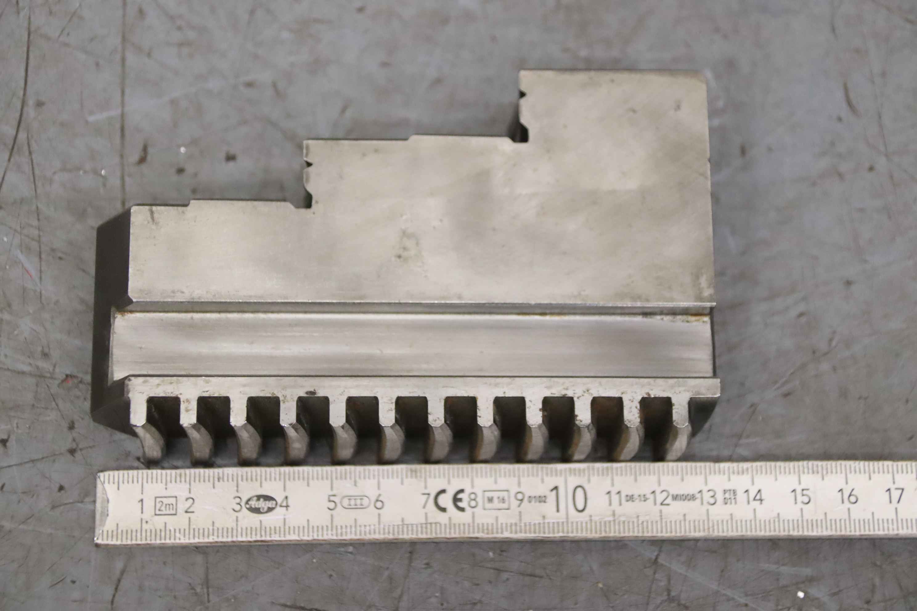 Interchangeable jaws, top jaws, three-jaw chucks, segment jaws, clamping jaws, step block jaws, step top jaws, block jaws, base jaws-Top jaws: Jaw set for three-jaw lathe chucks, hard-Jaw width: 34 mm-Dimensions: see photo technical. drawing-Total dimensions: 131/102/H80 mm -Total weight: 5,4 ...