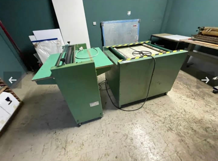 1.) Sumbel Herold 2.)Zechini Ottima 74 Roller press Year 2000 Size 74cm Roller pressing unit to press together paper, cardboard, material, leather, plastic, corrugated carton, etc. Max material thickness: 3,5 mm. Dimensions: 96 x 85x 105h cm Net weight: 119 kg 3.) Schmedt Präkant 6201 Turning-in machine Schmedt Präkant 0601, good condition, cleaned and checked, max.size 600x600mm, min,150x150mm, max. board thikness 6mm, min.1,5mm.