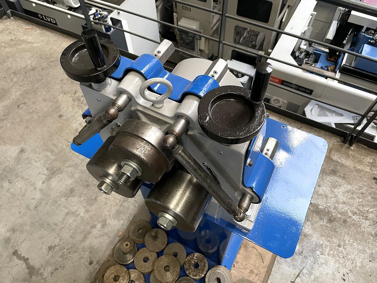 - drie aangedreven rollen - de twee onderste rollen zijn verstelbaarDia rolls: 117/227 mm Kalıp mandrelinin diametri: 30 mm Dönüş hızı: 20 rpm. Motor gücü: 2 HP Uzunluk: 900 mm Derinlik: 680 mm Yükseklik: 1360 mm Ağırlık: 200 kg