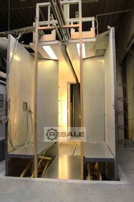 Mükemmel durumda profesyonel toz boya tesisi, bugün itibariyle mevcuttur. Özellikler: Fırın boyutları: 20 metre uzunluk x 5,5 metre genişlik Fırında taşıma zinciri: 45 metre uzunluğunda (Z şeklinde) Isıtma: Her biri 300 kW'lık 2 adet dolaylı gaz brülörü Otomasyon: Otomatik kapılar Yapım Yılı: 2013 Fiyat: 72.000 € (sökme ve nakliye hariç)
