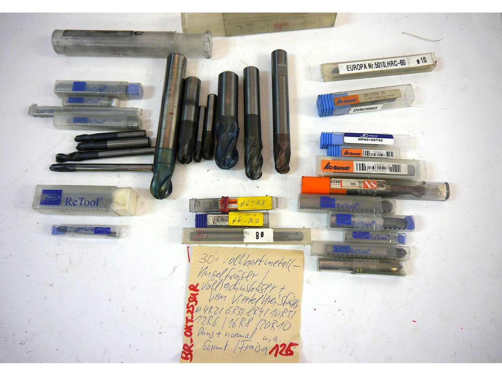 30x solid carbide ball/full radius/quarter circle milling cutters (D=4 R2 / 6R3 / 8R4 / 10R5 / 12R6 / 16R8 / 20R10), long and normal from Garant and Fraisa, weight 3kg