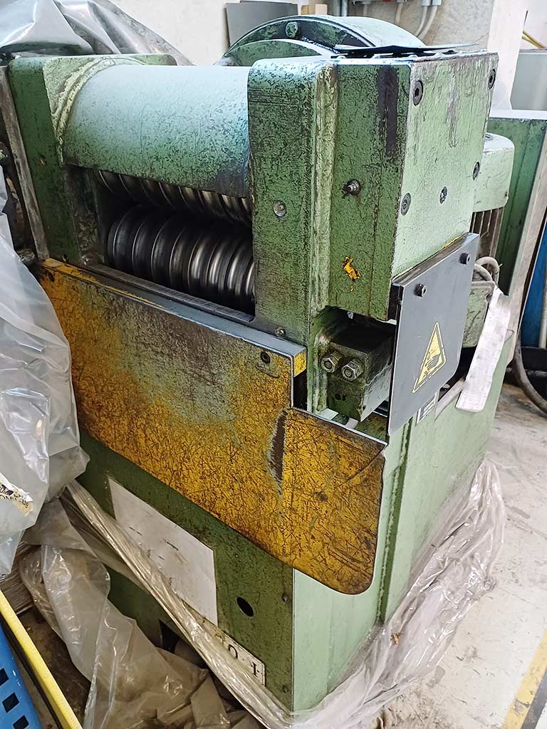 Alüminyum yarım kabukları poliamid yalıtım çubuklarıyla termal olarak kırılan profillerde birleştirmek için Schüco rulo sıkma makinesi mevcuttur. Profil aktarım hızı: yaklaşık 34m/dakika, maksimum profil montaj derinliği: 250mm, maksimum profil yüksekliği: 400mm, maksimum yalıtım çubuk aralığı: 300mm, makine boyutları X/Y/Z: yaklaşık 900mm/900mm/1650mm, ağırlık: yaklaşık 750kg. Giriş ve çıkış dahil. Belgeler mevcut. Sahada inceleme yapılabilir.