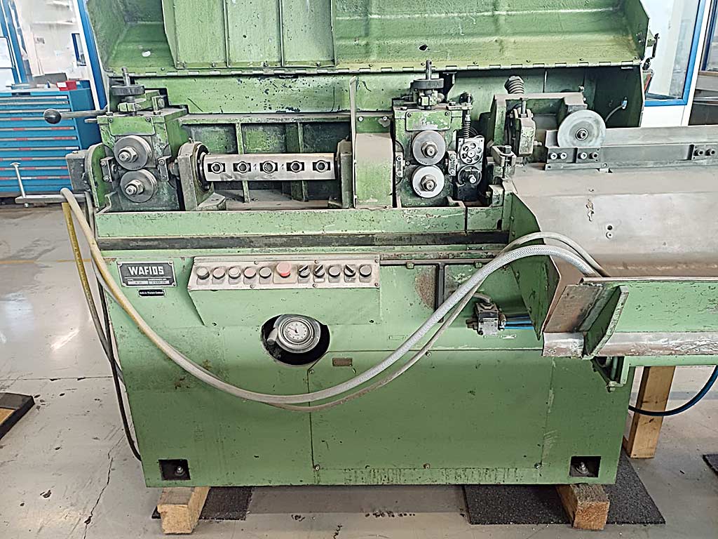 1000mm düzleştirme abatlamasına sahip Wafios tel düzleştirme ve kesme makinesi mevcuttur. Tel çapı aralığı: 1.5mm-7mm, kesme uzunluğu aralığı: 20mm-3000mm, düzleştirme rotor hızı: 6800rpm, pitch: 71/69, kesme vuruşu: 270/dakika, makine boyutları X/Y/Z: yaklaşık 3300mm/1200mm/1800mm, ağırlık: yaklaşık 1400kg. Sahada inceleme yapılabilir.