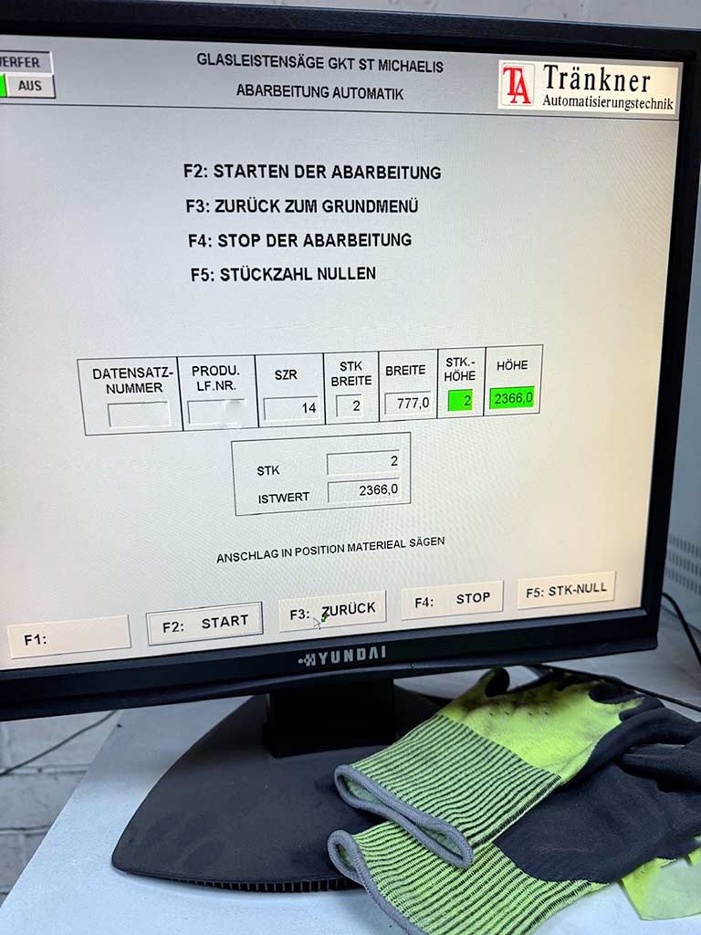 Tränker otomasyonu ve kontrolüne sahip bir cam kesme makinesi Lenhardt mevcuttur. Şerit genişliği: 777mm, şerit uzunluğu: 2366mm. Belgeler mevcuttur. Sahada inceleme yapılabilir.