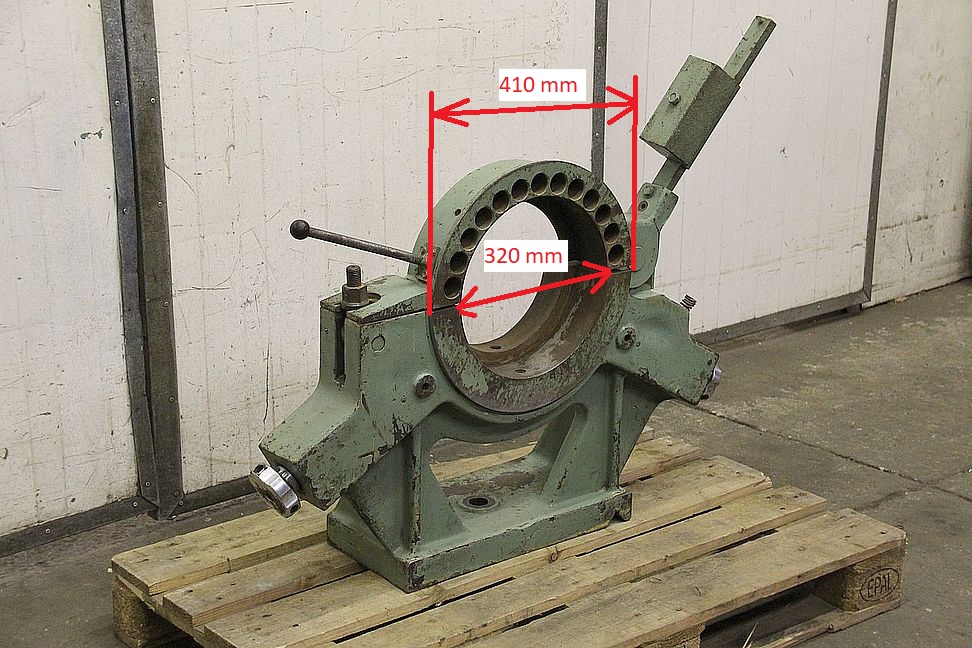 Bezel, steady rest, lynette -max passage. Ø: 320mm (410mm) -Center height: 500 mm -Drawing: with the photos -Dimensions: 1000/270/H900 mm -Weight: 216 kg