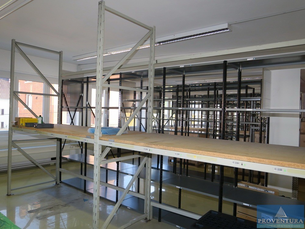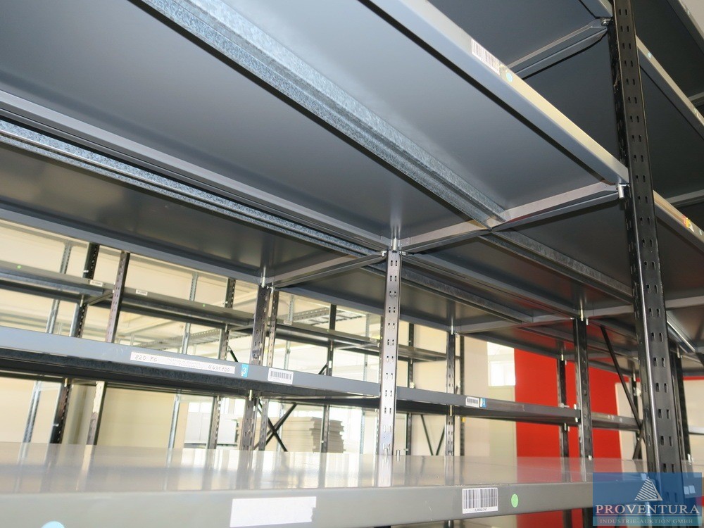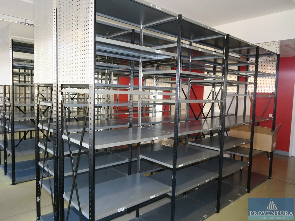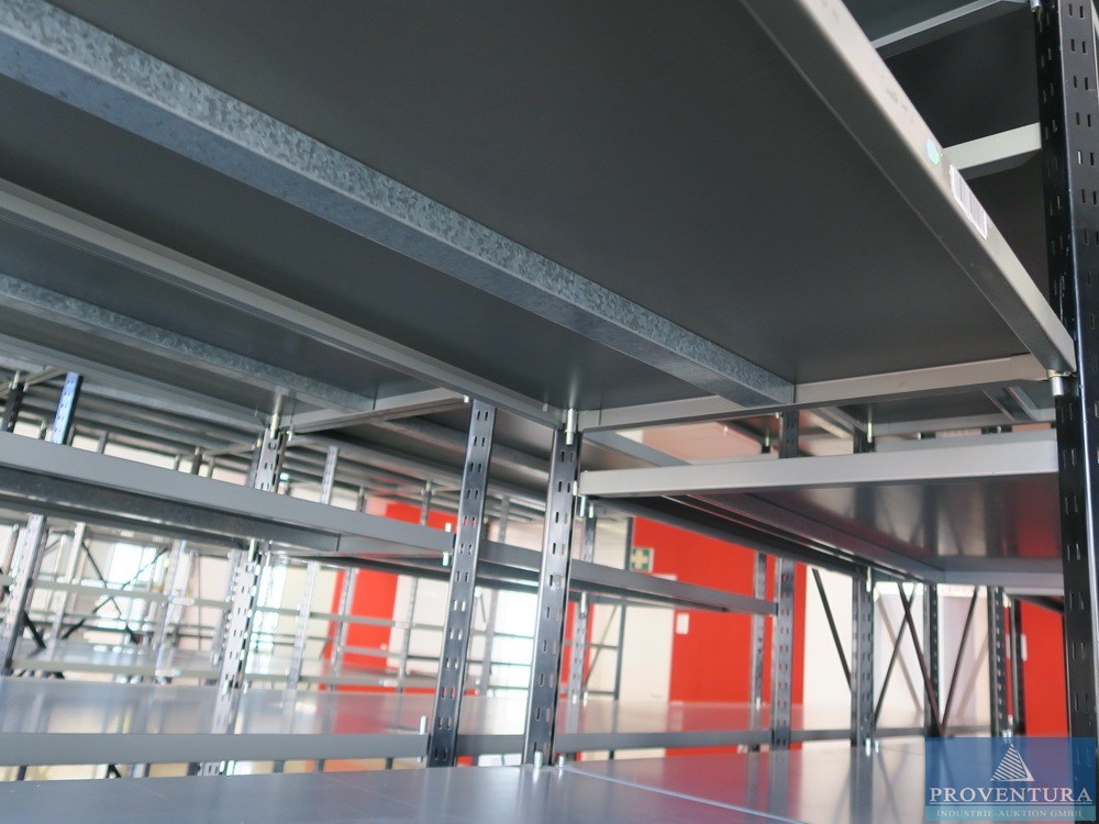 Ağır hizmet için sürtesiz raflar metal 15 stand, her biri yaklaşık 200x60t cm 5 stand, yaklaşık 100 b cm 20 raf, yaklaşık 100x60 cm 10 stand, yaklaşık 10 raf yaklaşık 240x60 cm ölçülerinde, yaklaşık 47 raf, her biri yaklaşık 100b cm