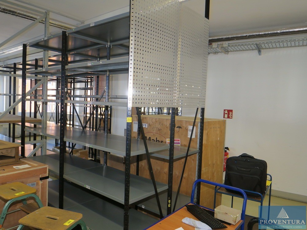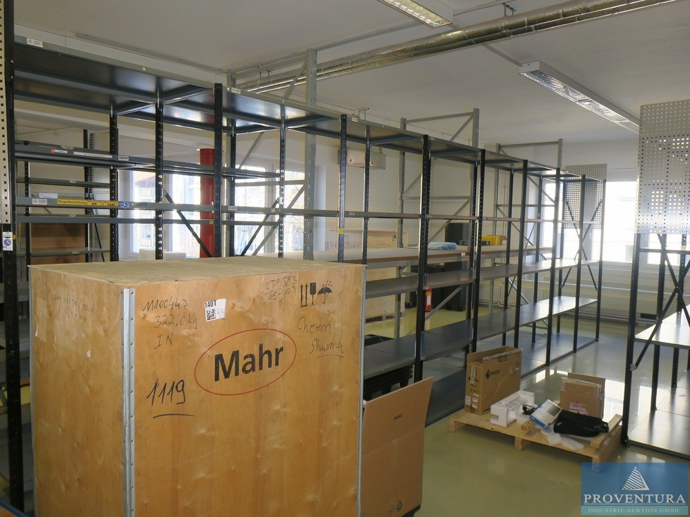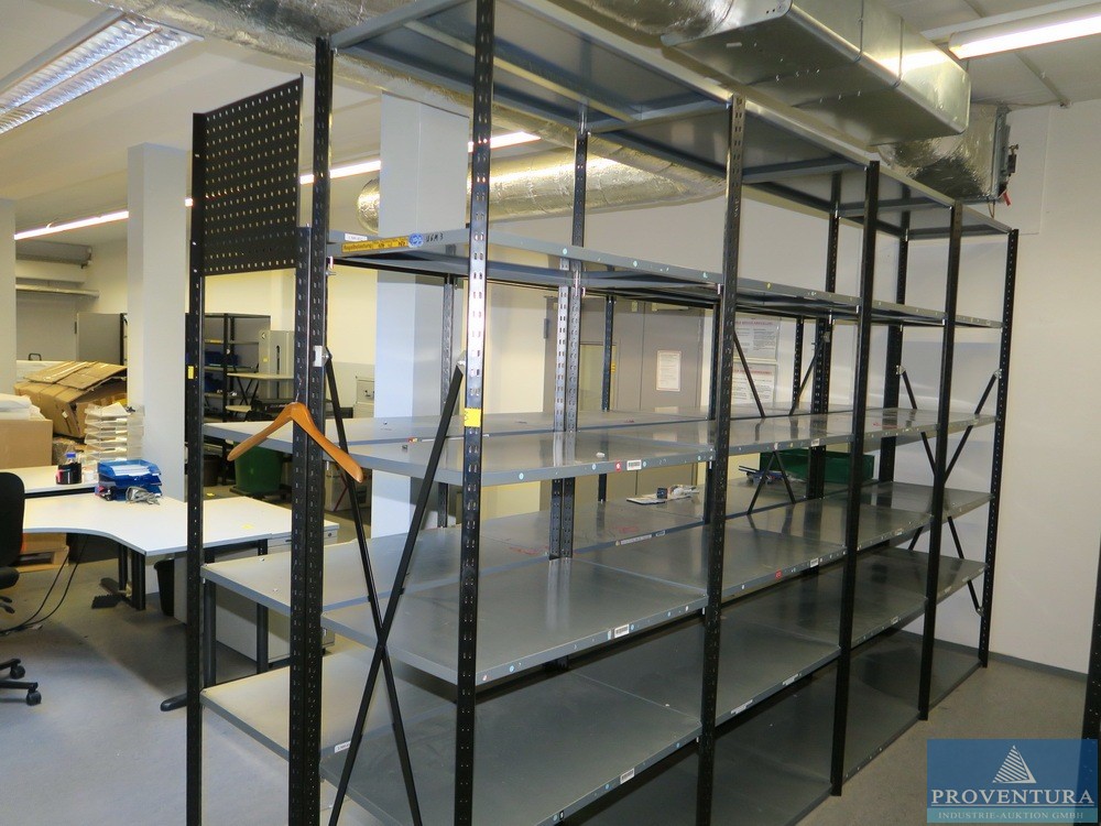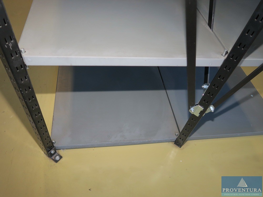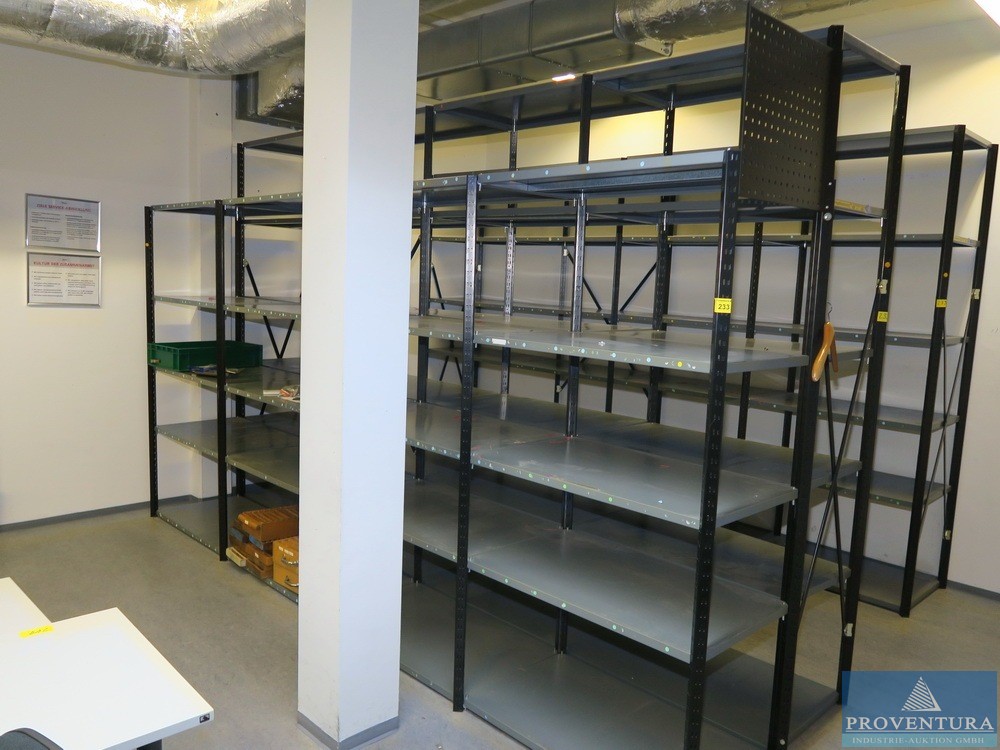 Ağır hizmet için sürtesiz raflar metal 15 stand, her biri yaklaşık 200x60t cm 5 stand, yaklaşık 100 b cm 20 raf, yaklaşık 100x60 cm 10 stand, yaklaşık 10 raf yaklaşık 240x60 cm ölçülerinde, yaklaşık 47 raf, her biri yaklaşık 100b cm