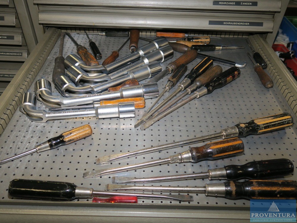 Yüksek dergin çekmece dolabı metal gri 14 çekmece, yaklaşık 75x106x75t cm, küçük içerikli el aletleri, boru anahtarları, tornavidalar, testereler vb.