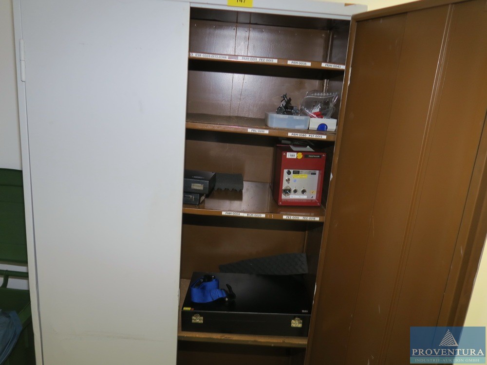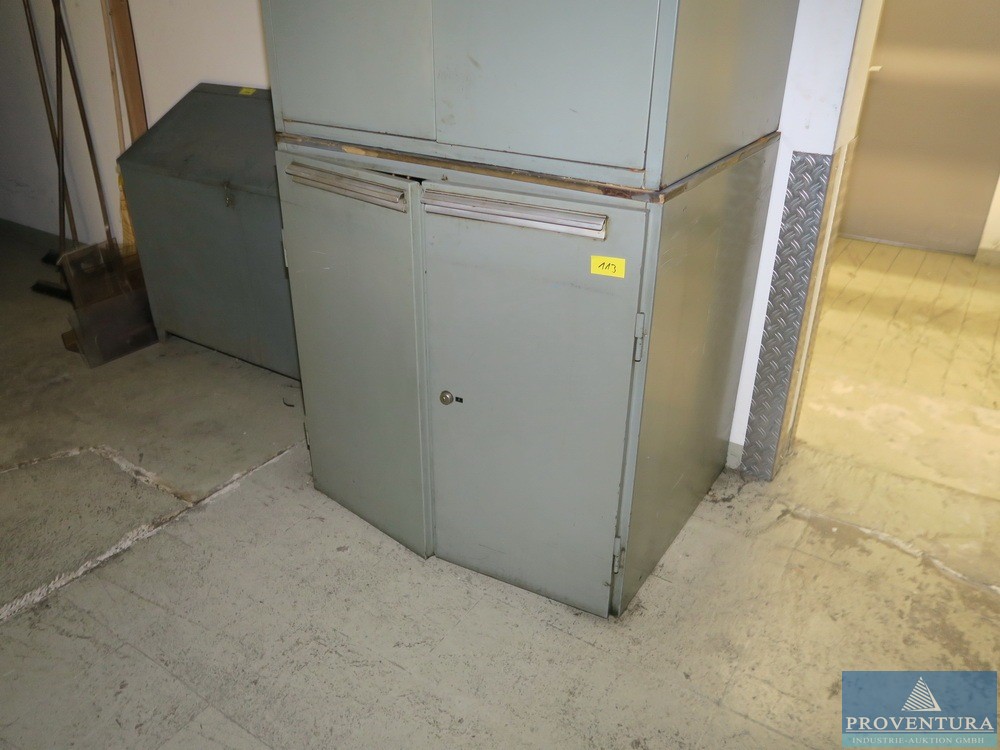 Atölye dolapları HAHN+KOLB gri 2 kapılı 2 parça, her biri yaklaşık 100x100 cm ölçüsünde, 1 adet 1 raflı dolab, 1 adet açılabilir açılışlı, içeriksiz