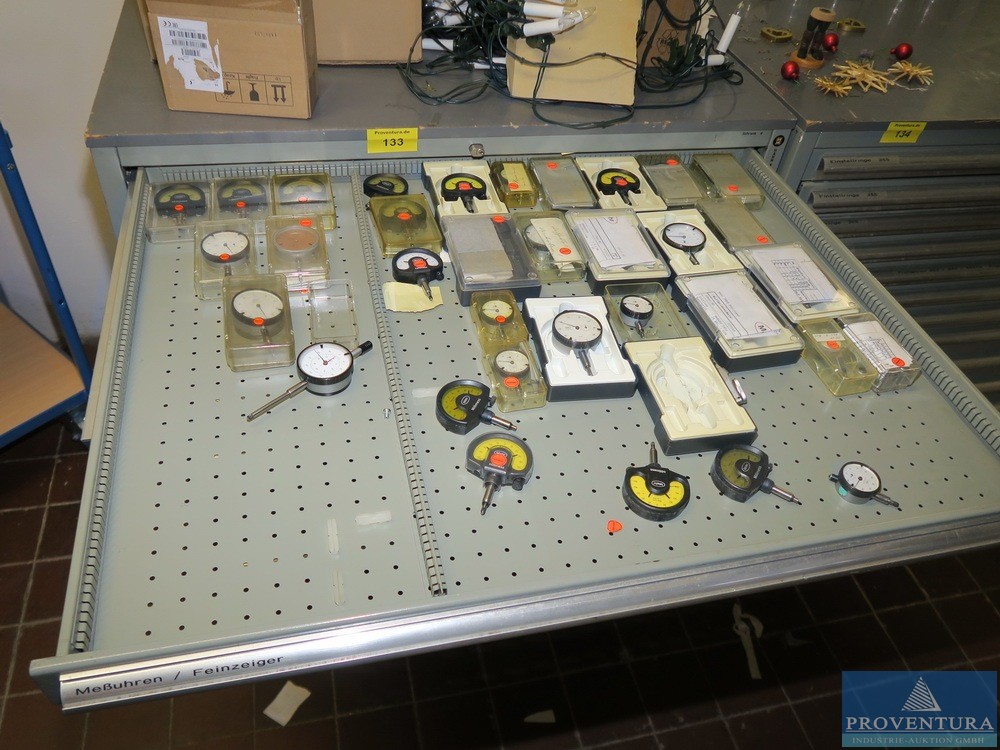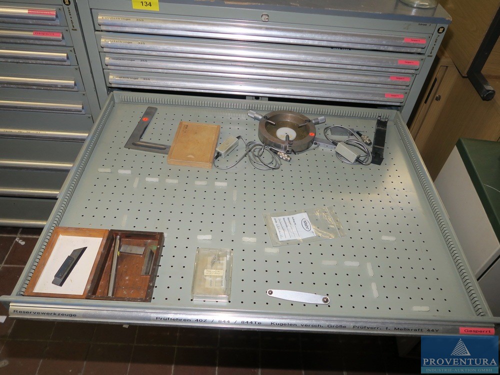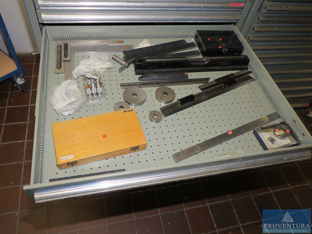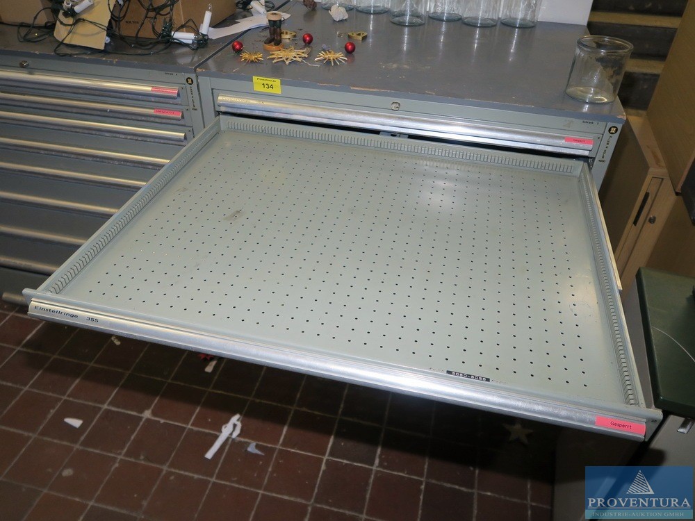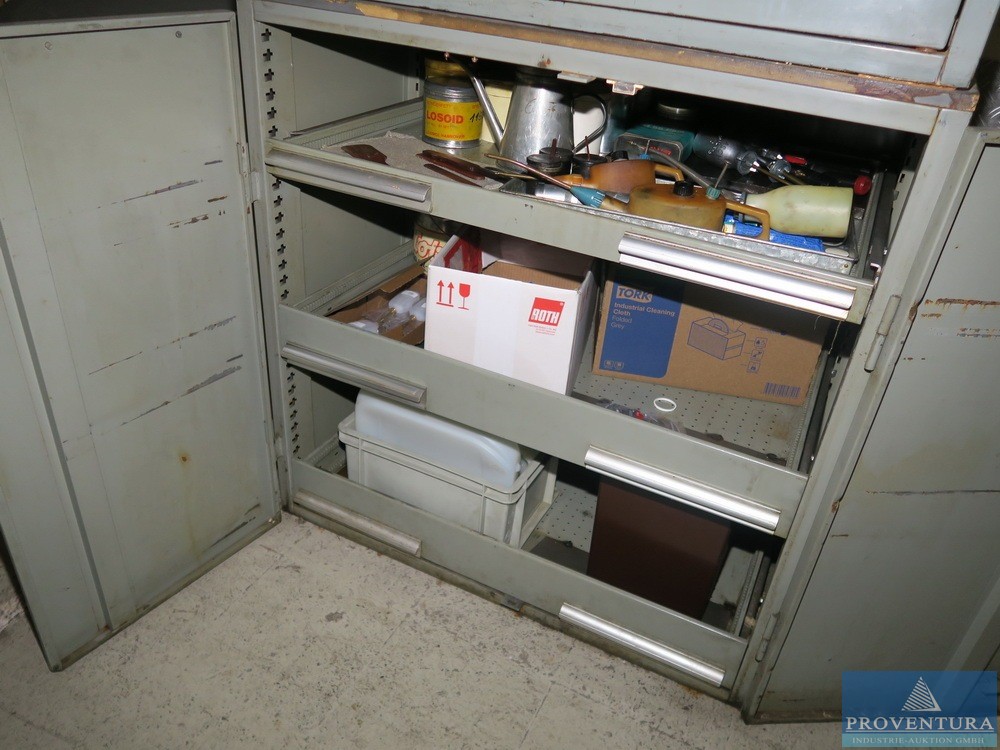 Matkap makinesi aksesuarlarıyla birlikte HAHN+KOLB çekmece dolabı, yaklaşık 100x105x80t cm, 13 çekmece,