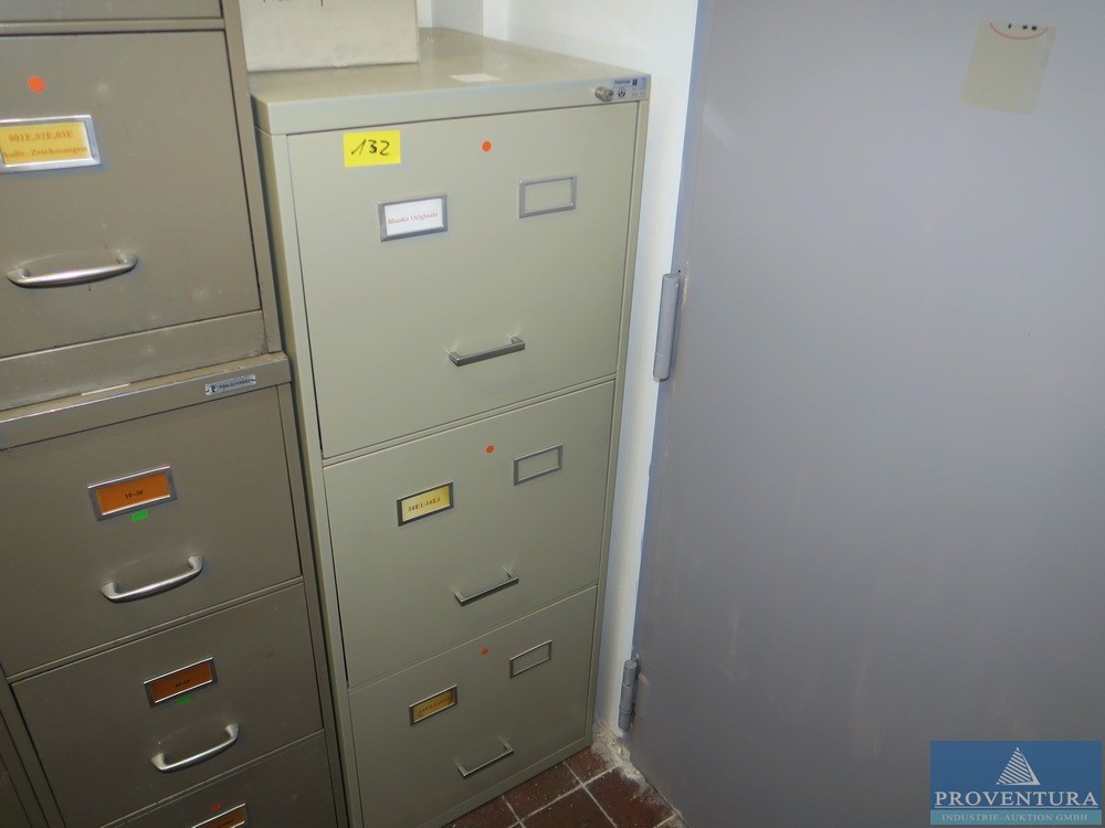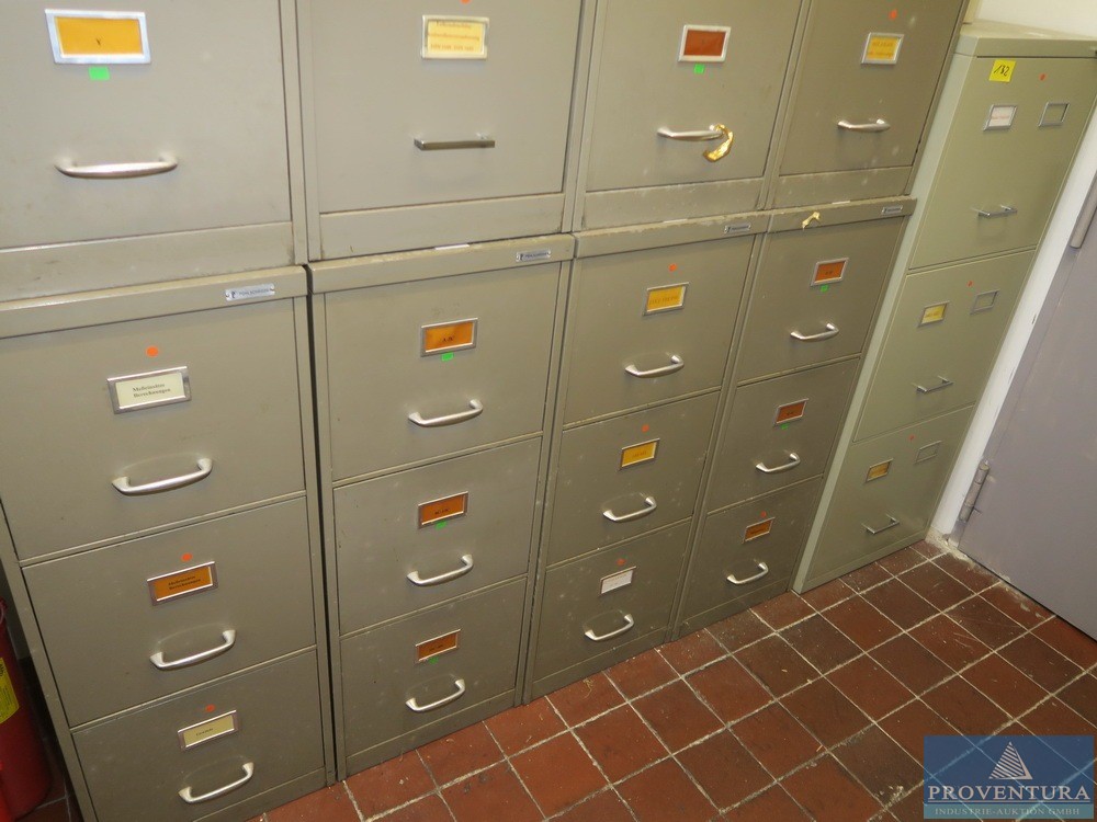 Asılı dosya dolapları POHLSCHRÖDER 8 tade, her biri 4 çekmece, her biri yaklaşık 40x180x60t cm, 1 adet 3 çekmece, yaklaşık 55x136x60t cm