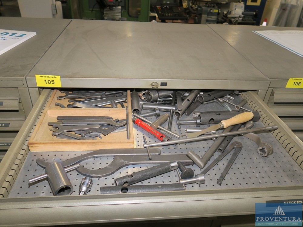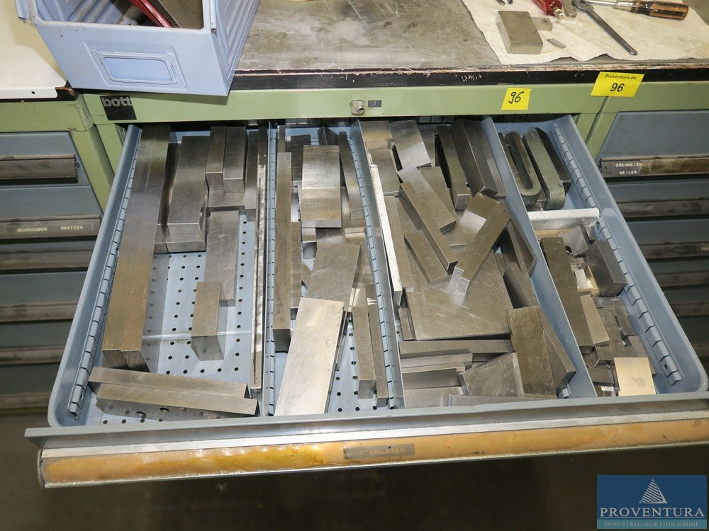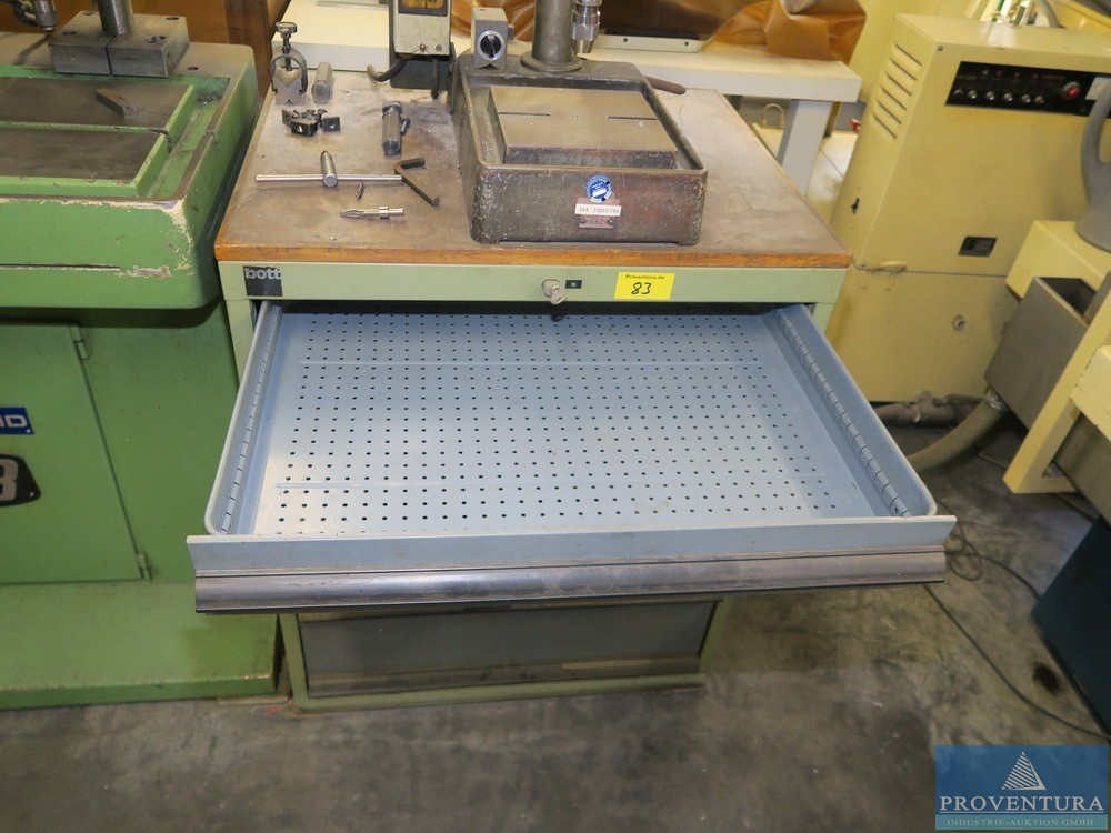 Tezgah matkap makinesi STEINEL BT 6.52, w. dergi çekmece dolabı BOTT, 6 çekmece, yaklaşık 75x90x60t cm, makinenin işlevi ve tamamlanması bilinmemektedir