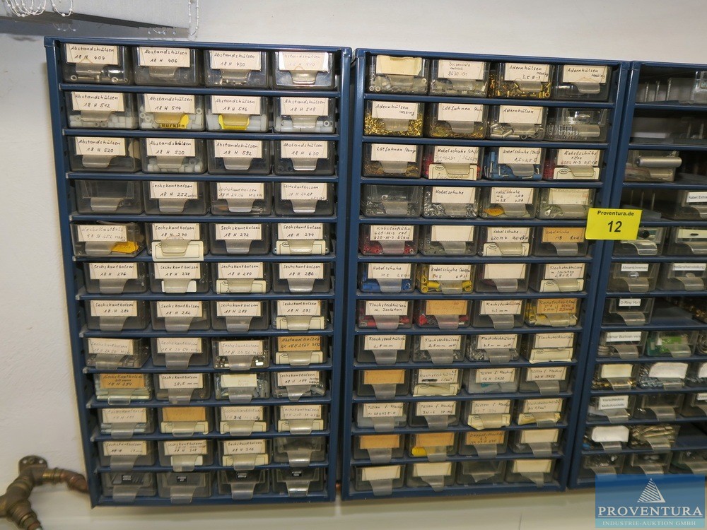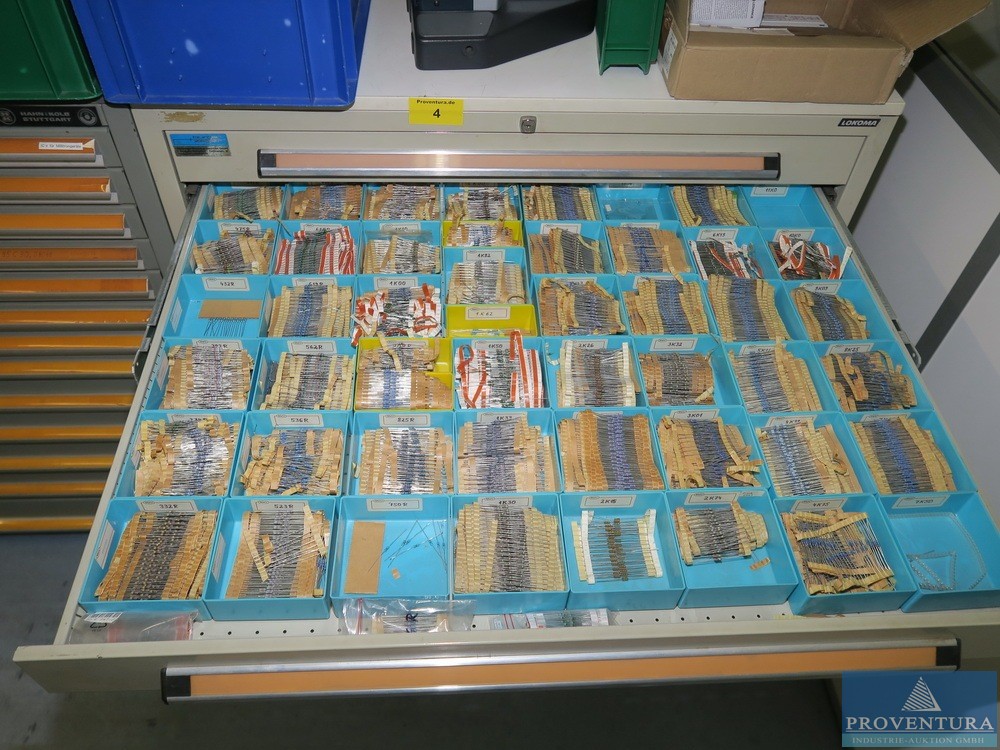 Şarjör çekmece dolabı LOKOMA gri 11 çekmece, dış boyutlar yaklaşık 100x104x80t cm, küçük içerki dirençler, kondansatörler, basılı devre kartları, aksesuarlar vb.