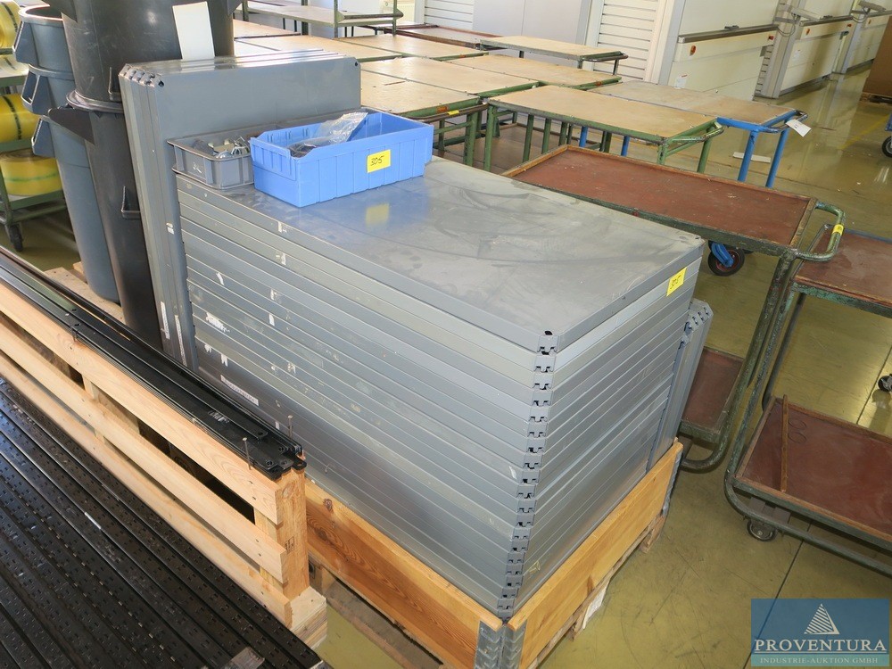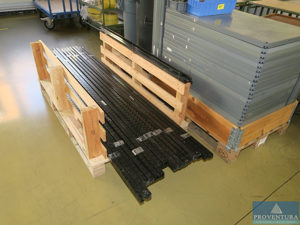 Ağır hizmet raf aksesuarları yaklaşık 20 stand, her biri yaklaşık 240 cm, yaklaşık 25 raf, her biri yaklaşık 60x100 cm, sabitleme klipsleri