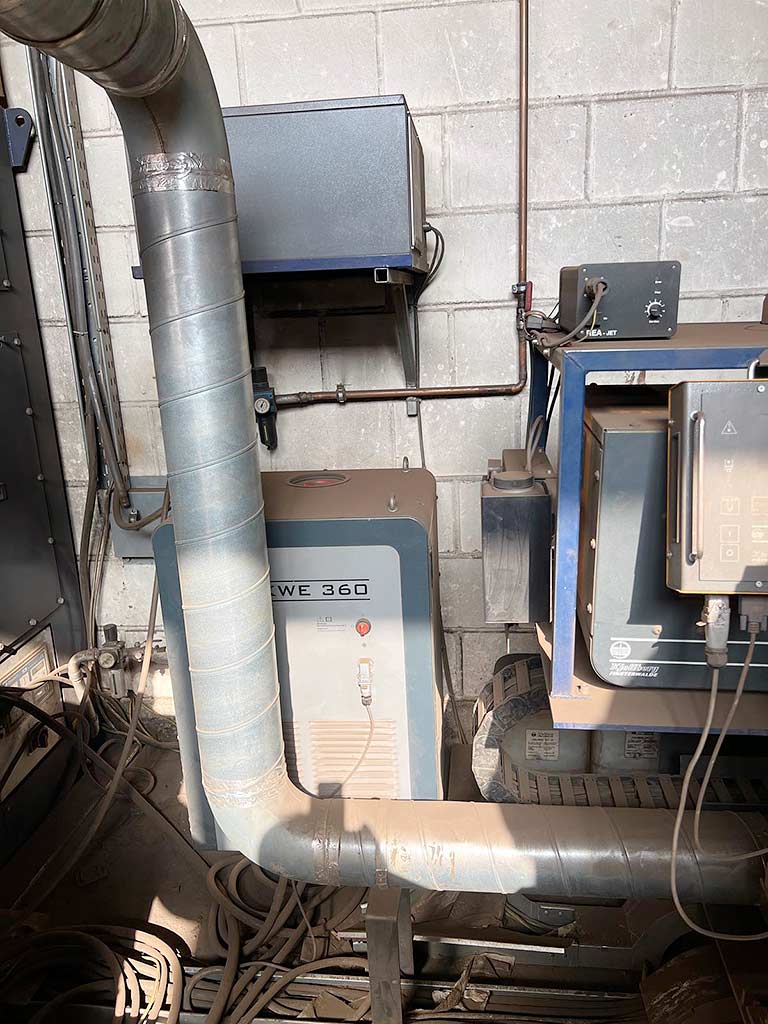 Tek taraflı alüminyum folyo kaplama için nispeten modern bir korona ön işlem sistemi mevcuttur. Malzeme: alüminyum folyo, kullanım amacı: kaplama, kaplama yanları: 1, ağ genişliği: 1350mm, işlem genişliği: 1450mm, işlem hızı: 3m/dakika, rulo çapı: 125mm, rulo uzunluğu: 1550mm, jeneratör tipi: Softal 9030, jeneratör gücü: 3kW. Toplam sistem boyutları X/Y/Z: yaklaşık 2000mm/1550mm/1700mm, ağırlık: yaklaşık 1500kg. Ozon egzoz sistemi RD 4 dahil. Belgeler mevcut. Sahada inceleme yapılabilir.