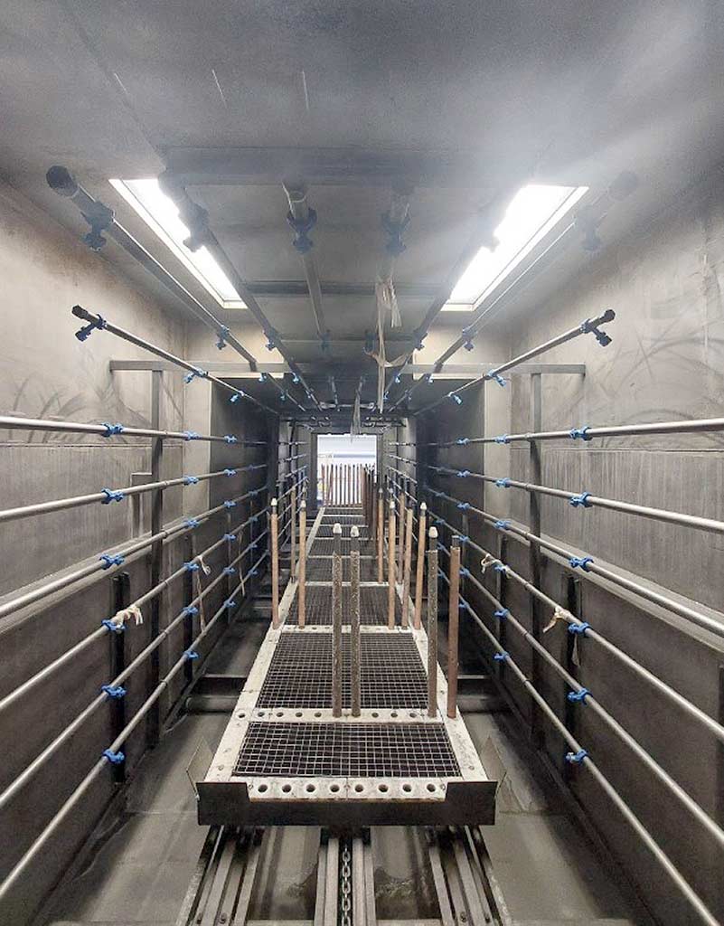 Alkalin bazlı tek odalı temizlik sistemi yıkama sistemi mevcuttur. Konteynerler: 3, toplam tank hacmi: 12,9m³, çalışma boyutları X/Y/Z: yaklaşık 8000mm/1200mm/1600mm, genel sistem boyutları X/Y/Z: yaklaşık 19500mm/7200mm/4300mm. Belgeler mevcuttur. Sahada inceleme yapılabilir.