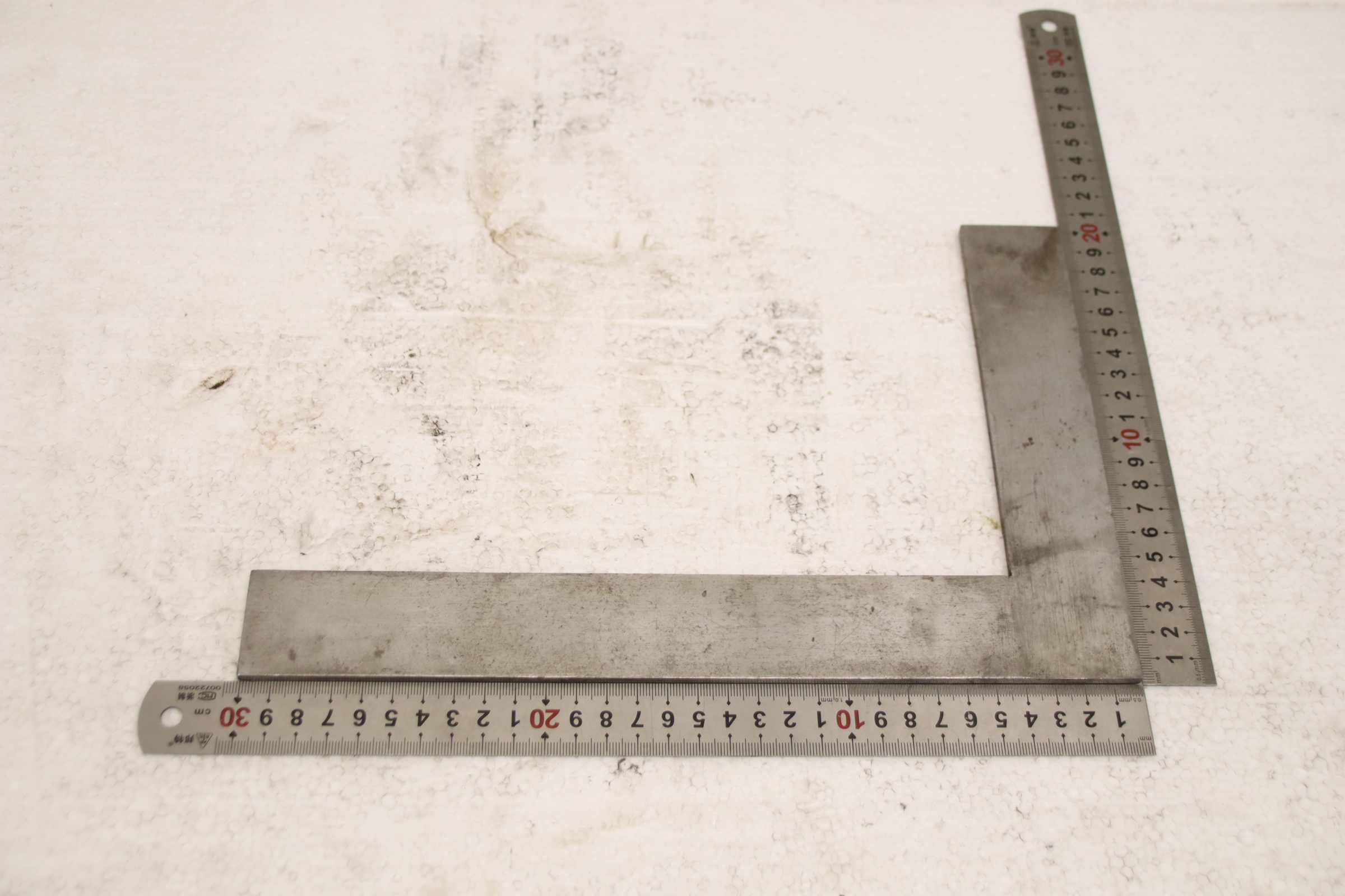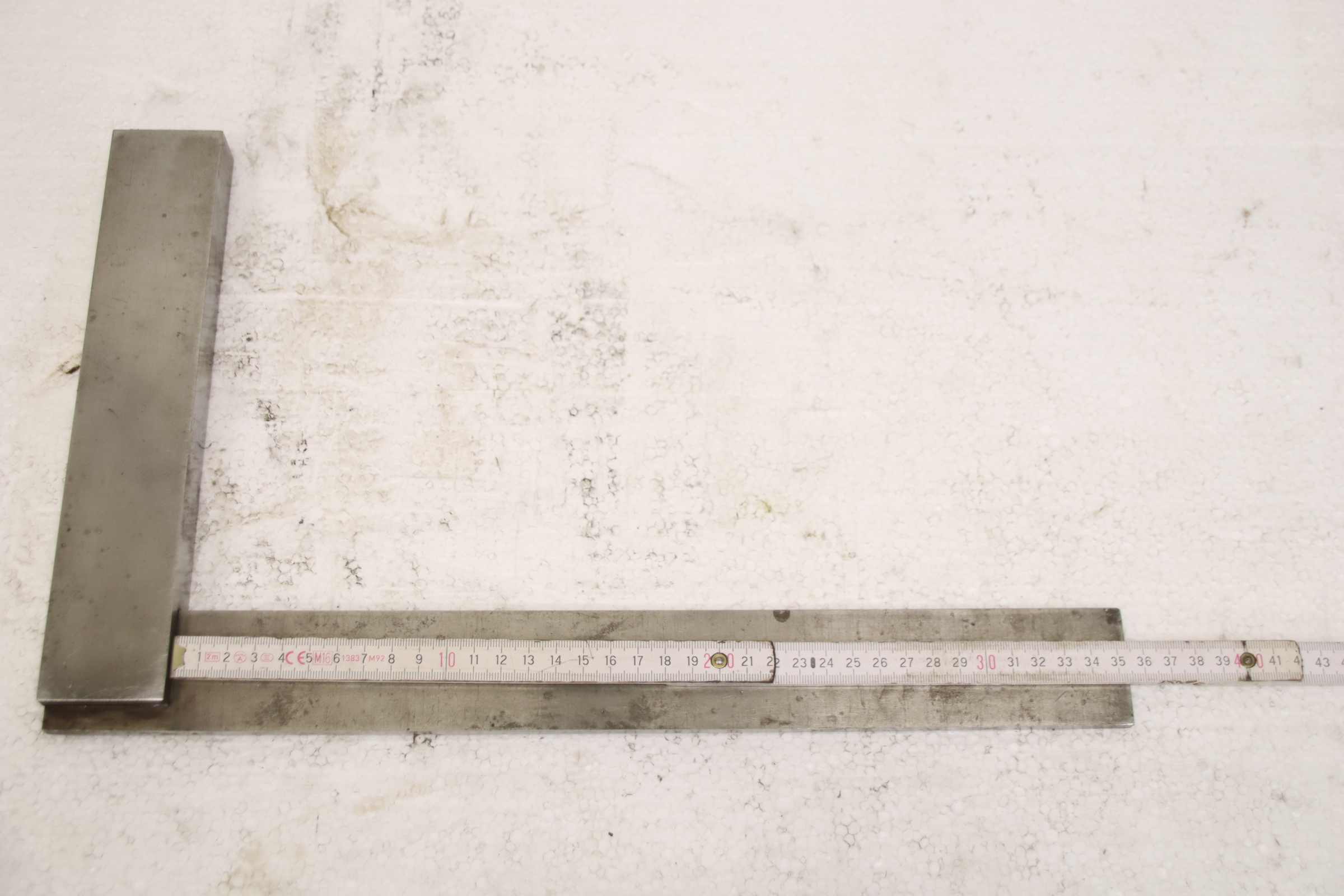Square, locksmithsquare, hair square, precision hair square -Angle angle: Leg length 750 x 375 mm -Dimensions: 755/375/H30 mm -Weight: 1.7 kg