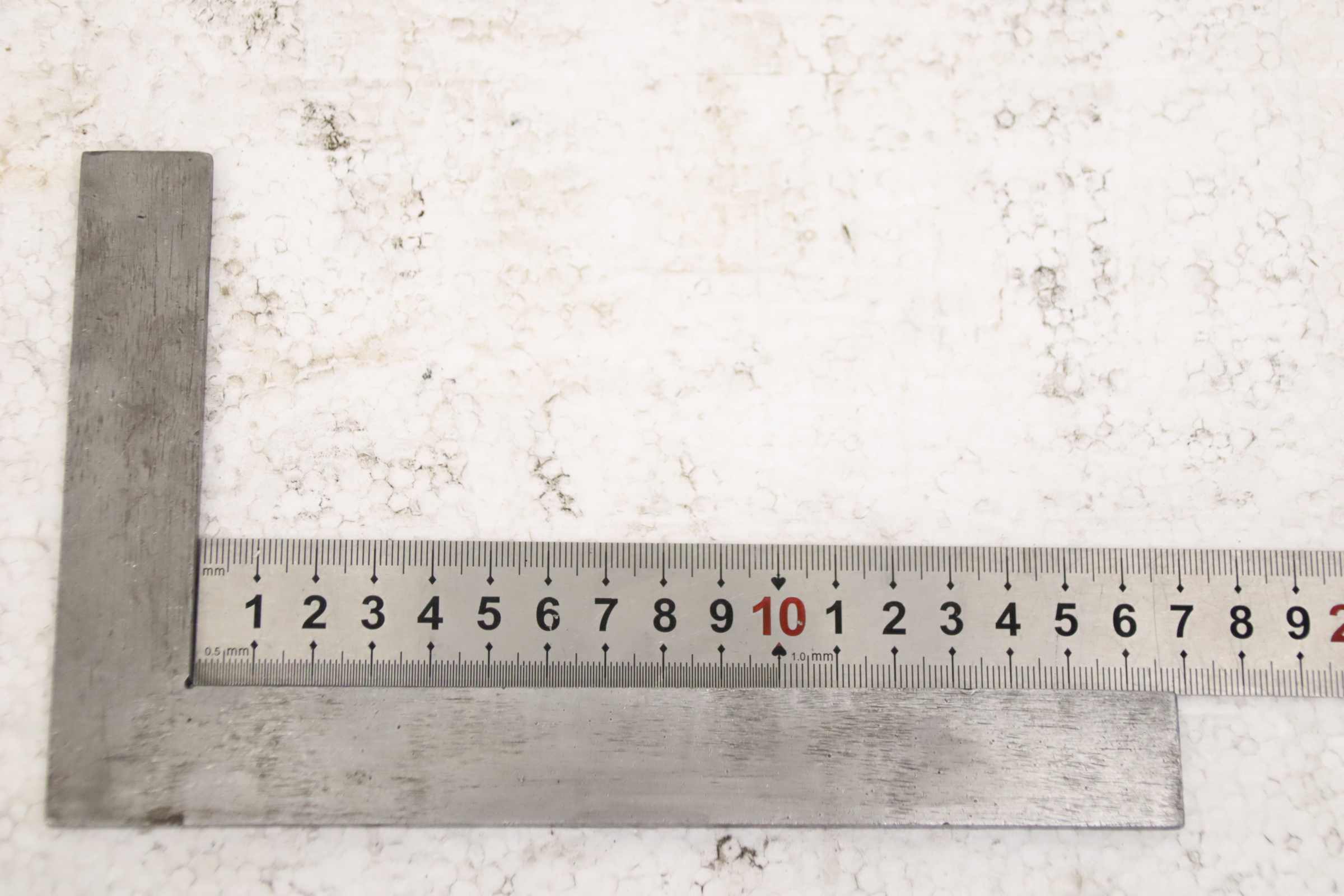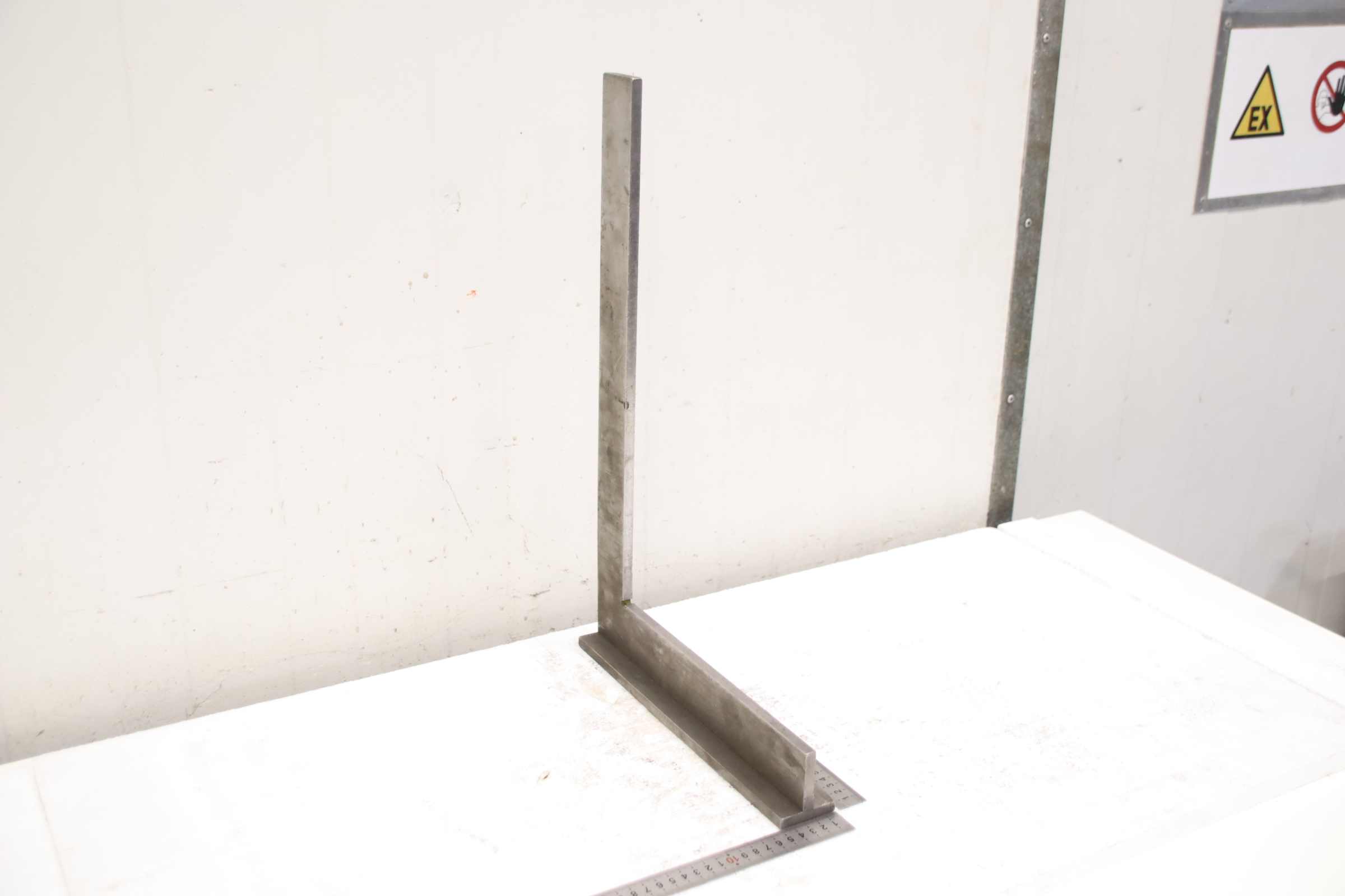 Stop square, locksmith square, control square -Manufacturer: Holex, stop angle DIN 875/1 -Type: 452510 100 x 70 mm -Accuracy level: 1 -Dimensions: 105/70/H20 mm -Weight: 0.3 kg