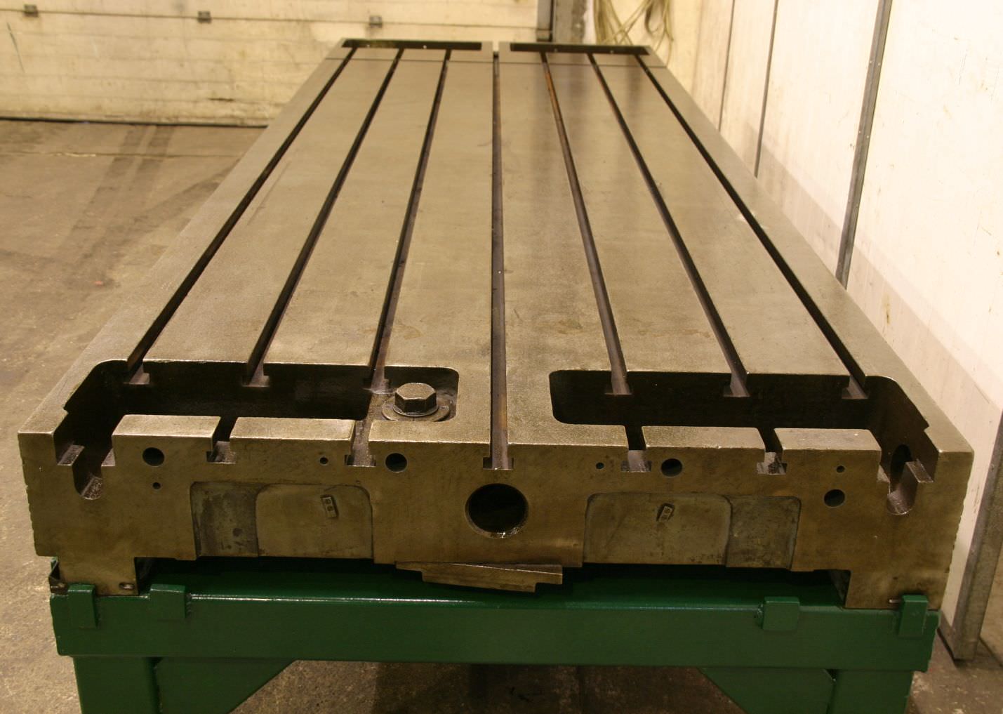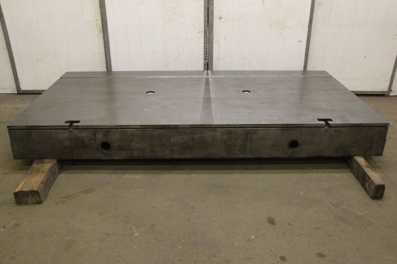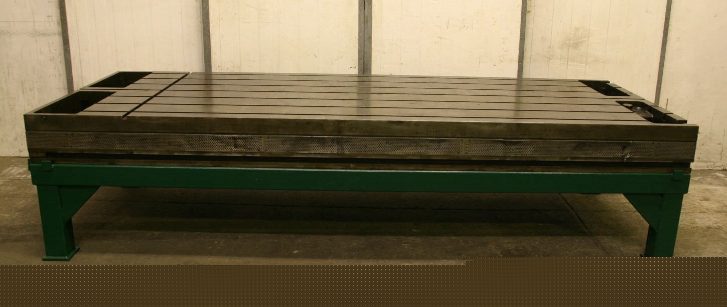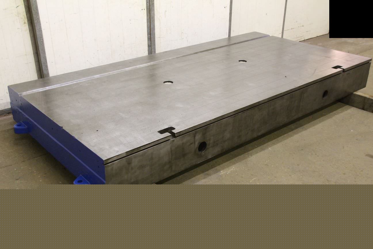 Clamping plate with T slots, plate field, welding table, welding table, plate boring machine -Width: 1320 mm -Length: 3530 mm -Height: 830 mm -Plate thickness: 75 mm -Plate: with support ribs -Groove width: 23 mm -Weight: approx. 3500 kg