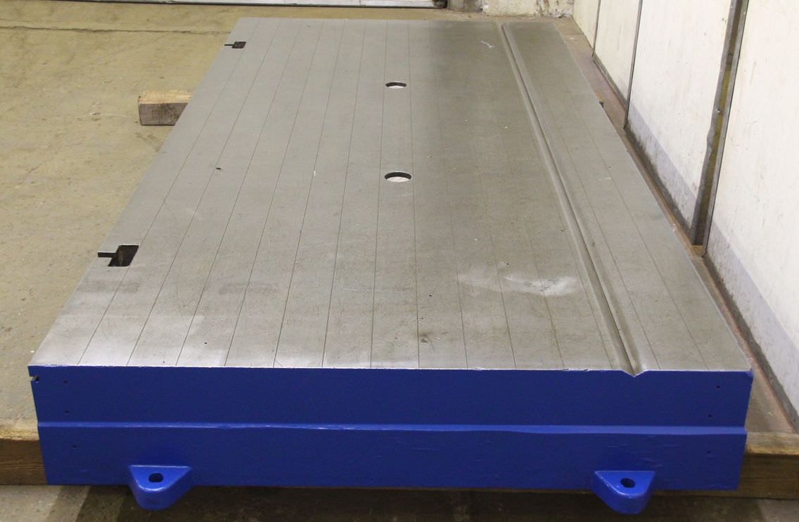 Mounting plate, scribing/marking plate, measuring plate, measuring table, welding table, welding table, straightening plate -Plate: has a prism and scribing lines -1x Front side: with T-slot -Width: 1495 mm -Length: 3000 mm -Height: 302 mm -Sheet thickness: 80 mm -Plate: is equipped with supporting ribs -Number: 2x plates available -Price: per piece -Transport dimensions: 3170/1580/H302 mm -Weight: 2100 kg/piece