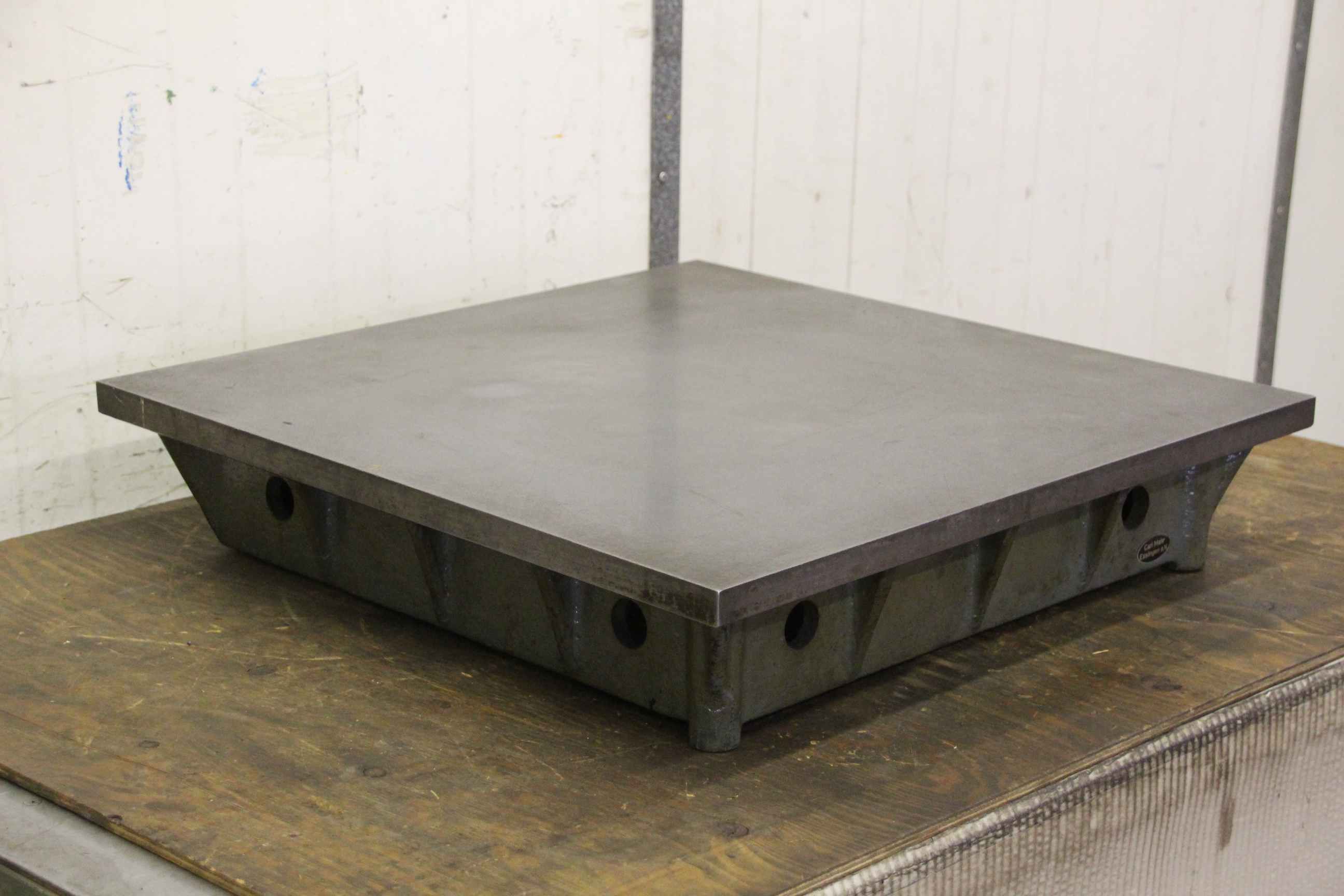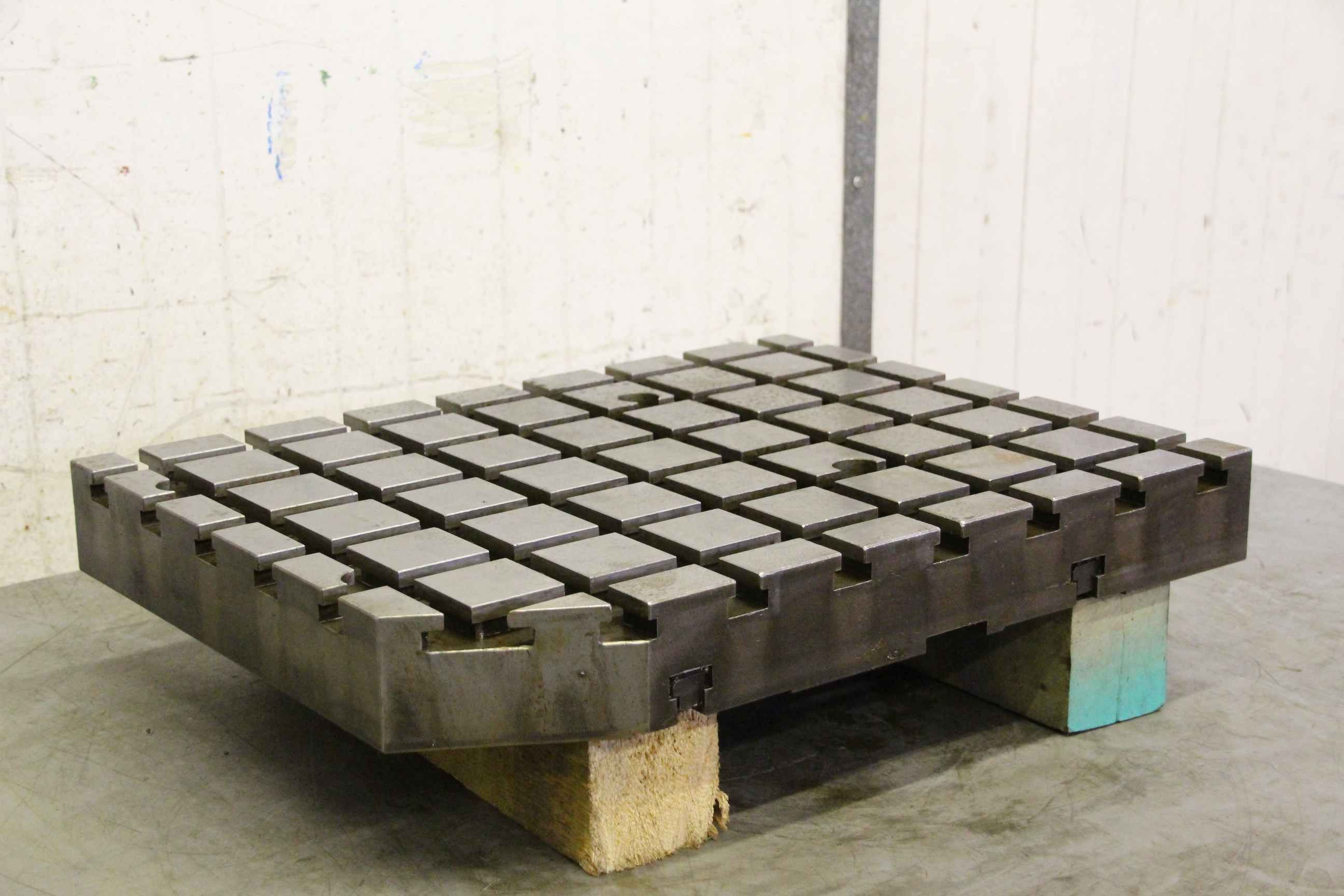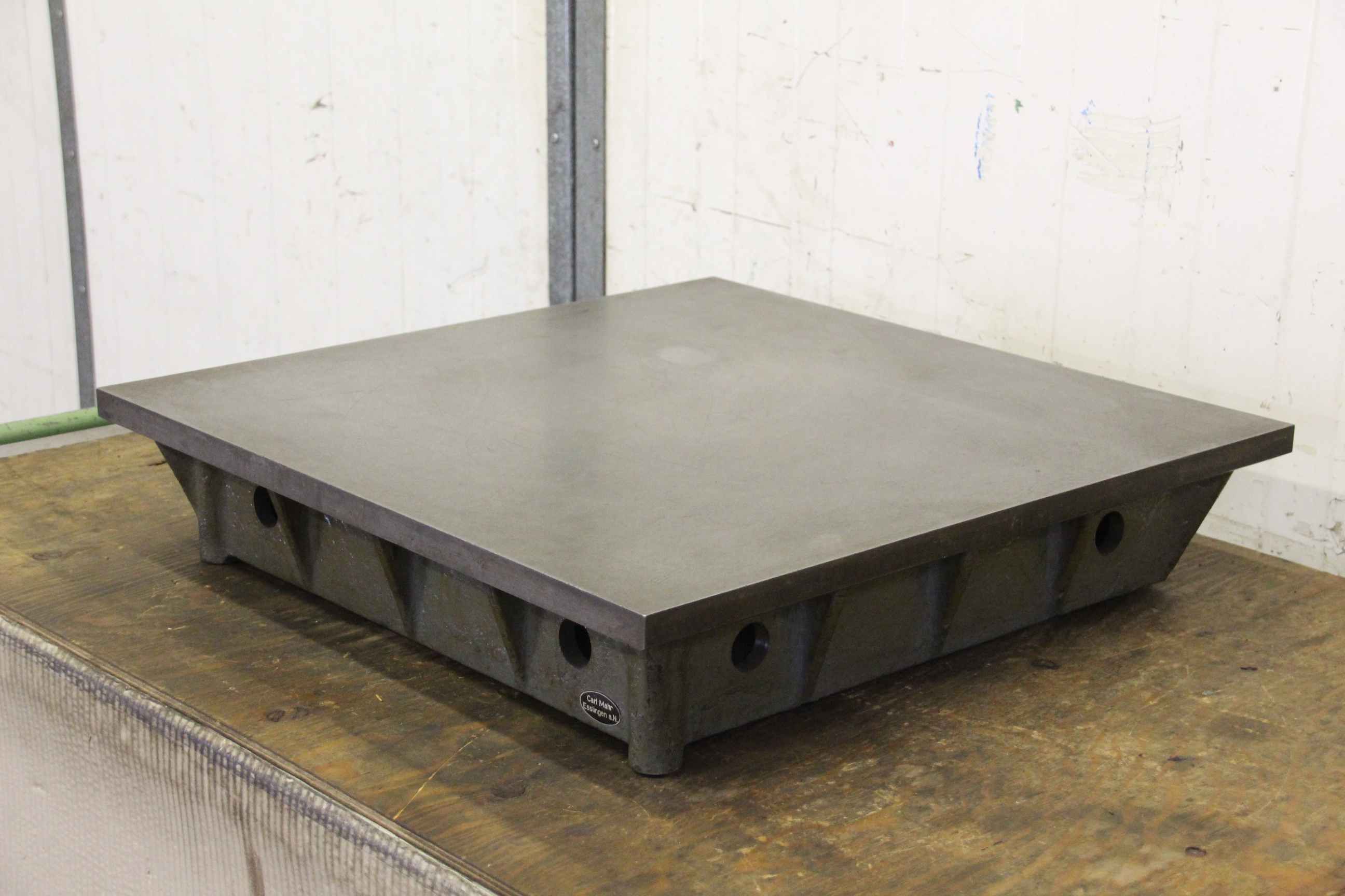Clamping plate, scribing-spotting plate, measuring plate, measuring table, welding table, welding table, straightening plate -Length: 630 mm -Width: 630 mm -Height: 130 mm -Plate thickness: 30 mm -with support ribs -Weight: 121 kg