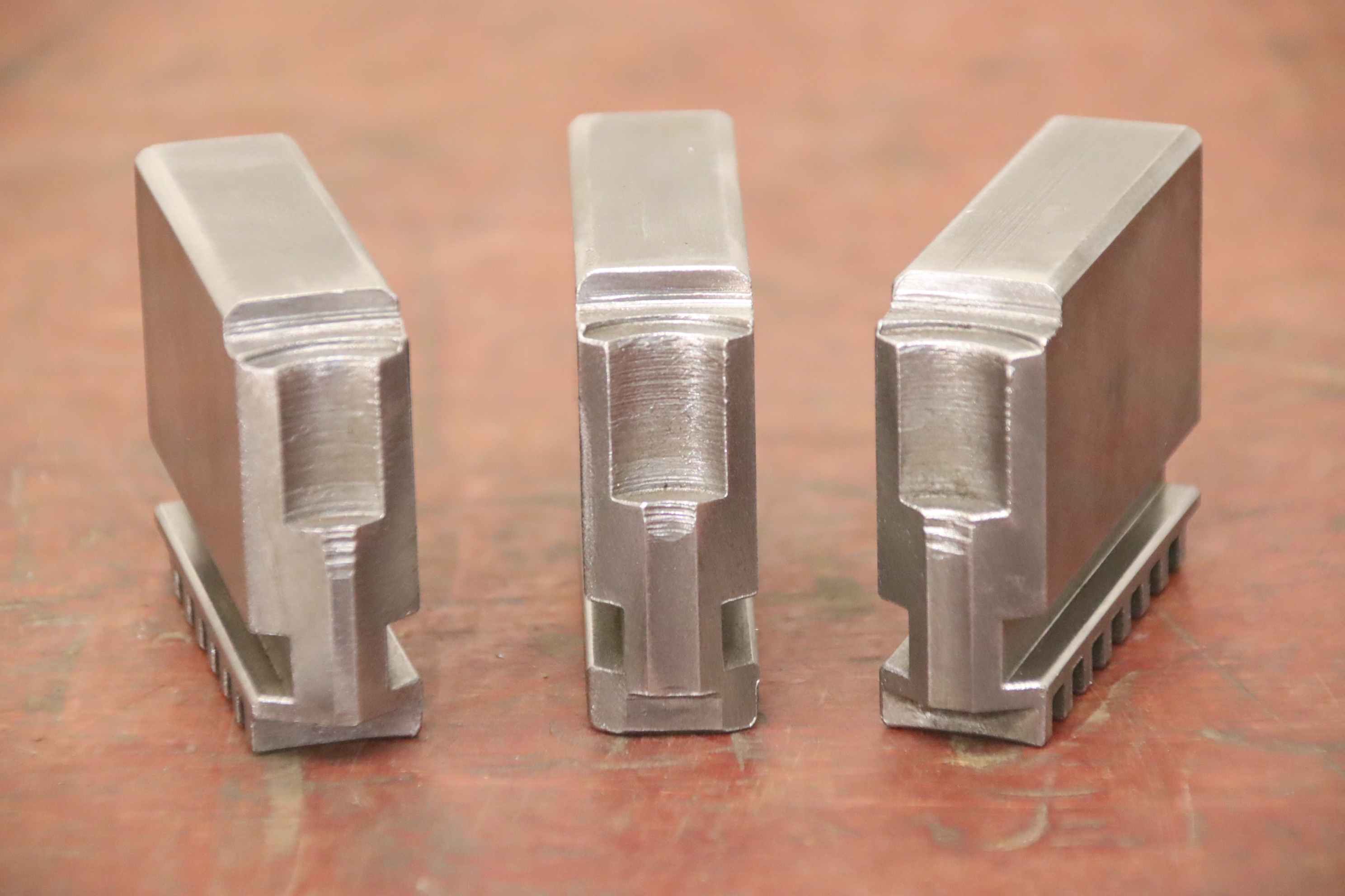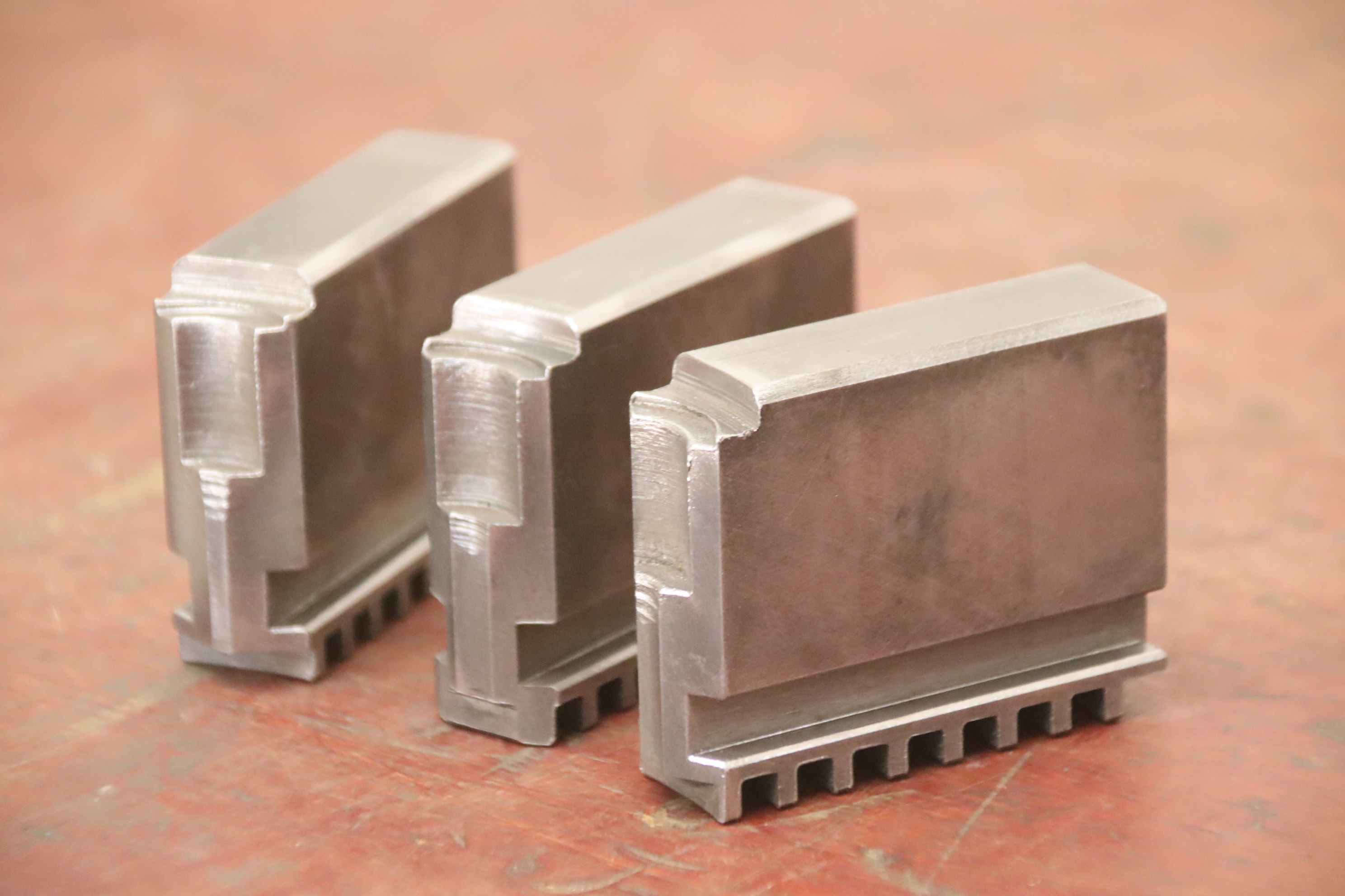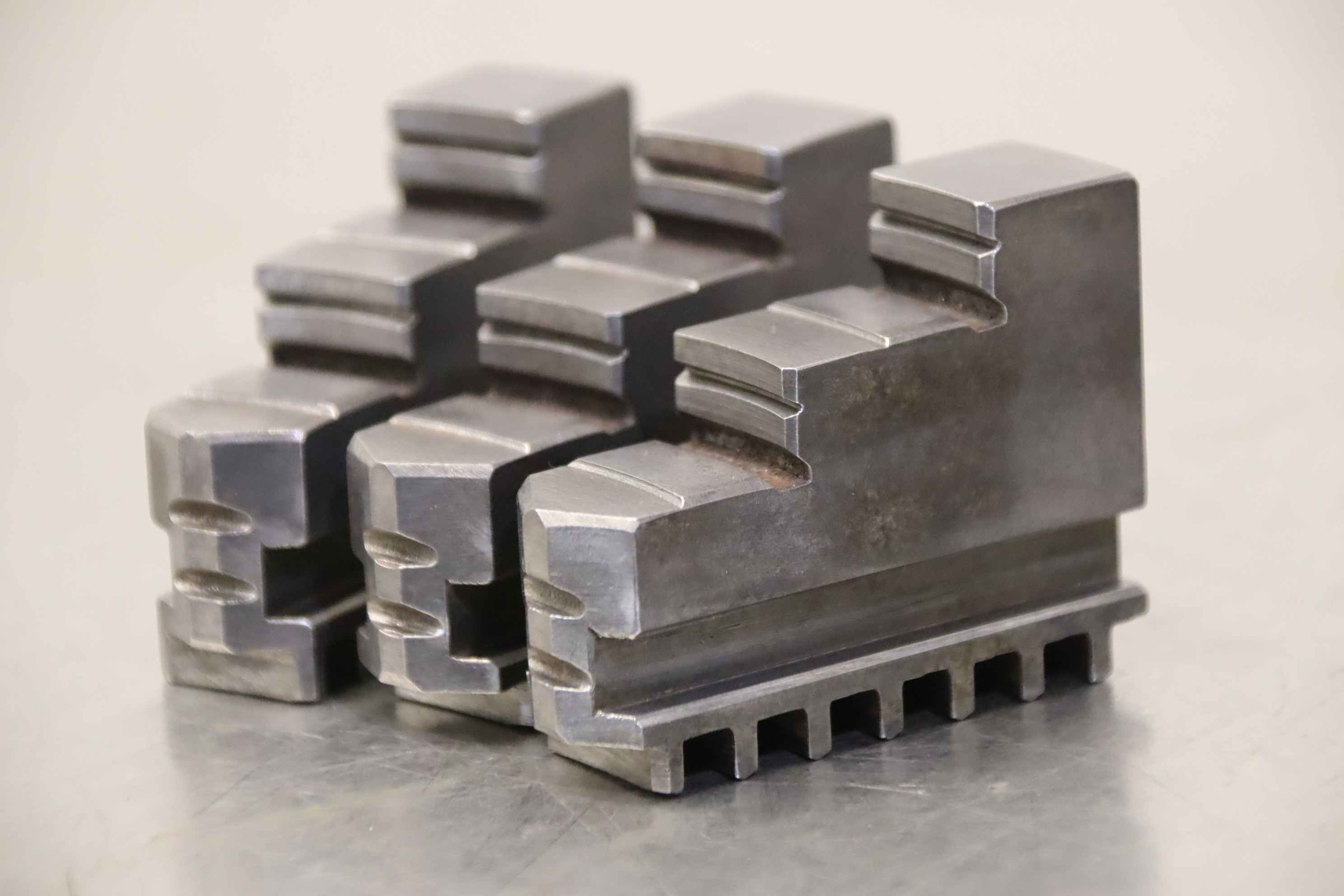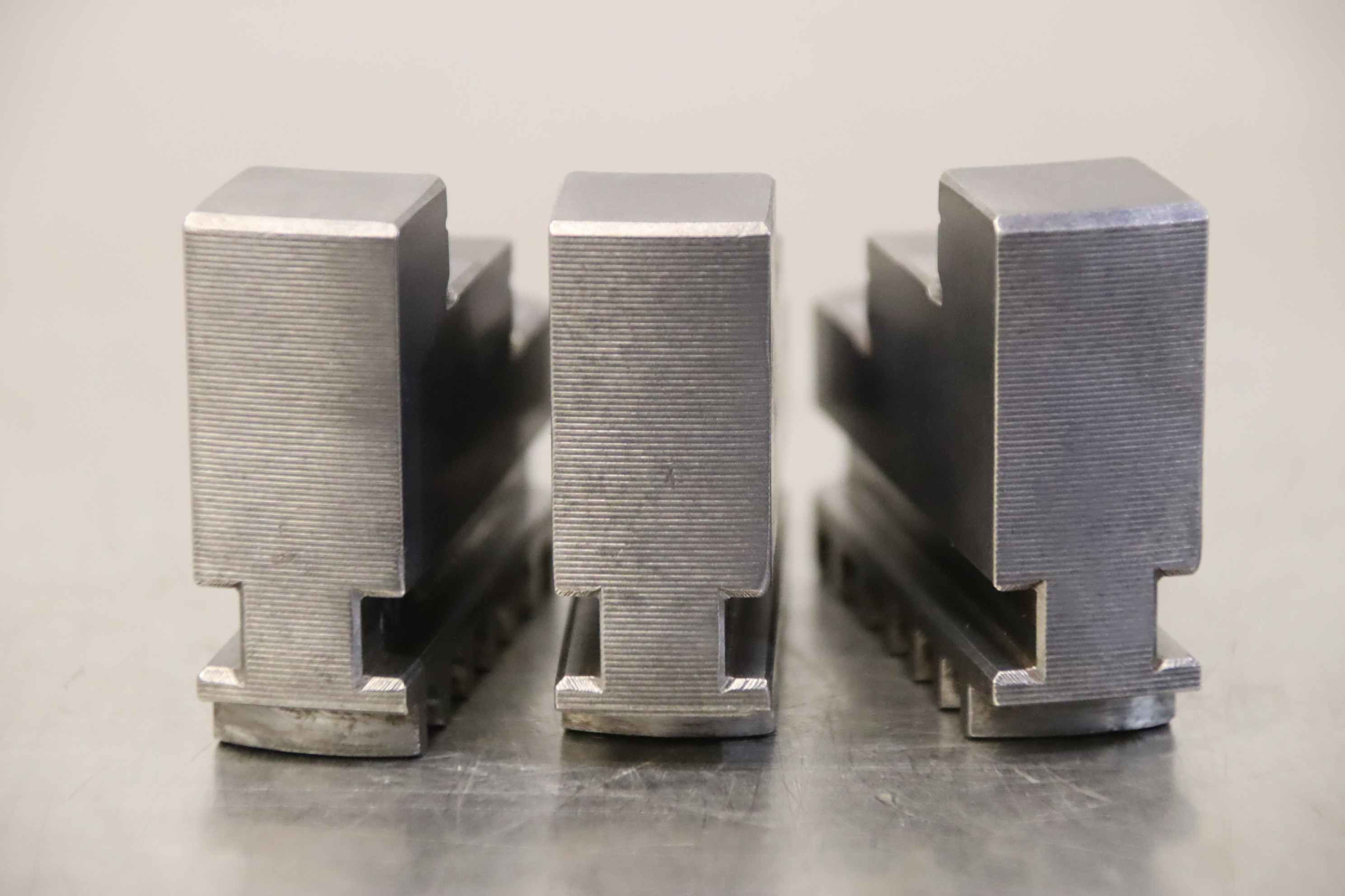 Interchangeable jaws, top jaws, three-jaw chucks, segment jaws, clamping jaws, step block jaws, step top jaws, block jaws, base jaws, 4-jaw set-Top jaws: turning jaw set, 4-piece hard-Jaw width: 38 mm-Dimensions: see photo techn. drawing-Dimensions: 130/150 / H90 mm-Total weight: 8.8 kg