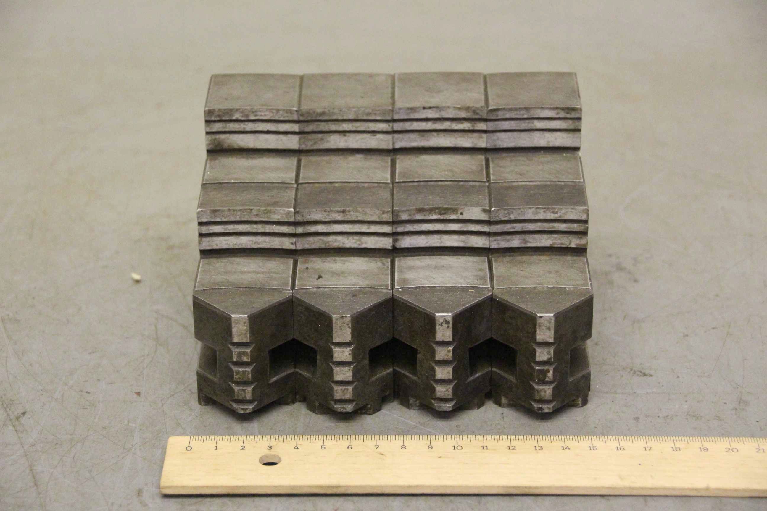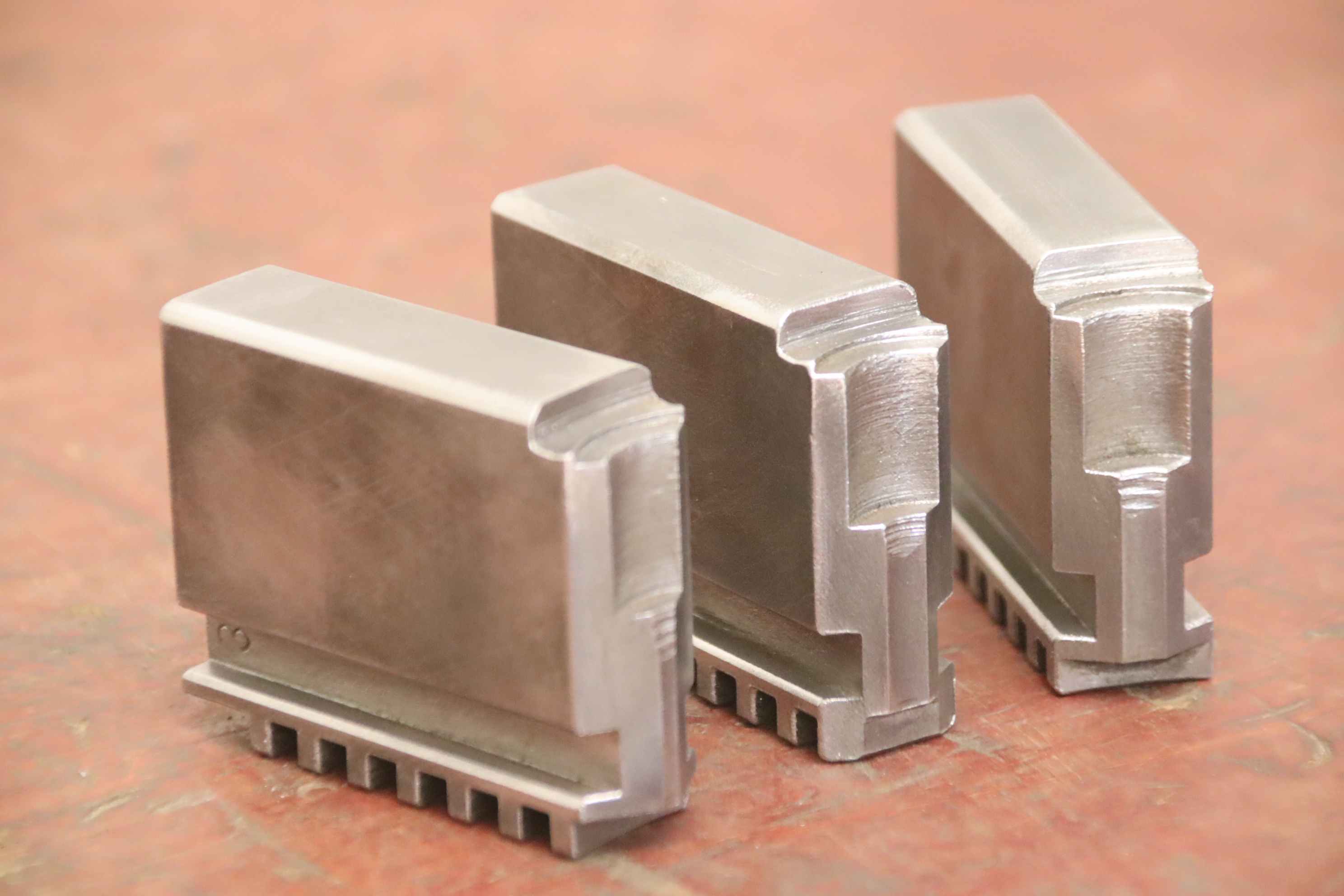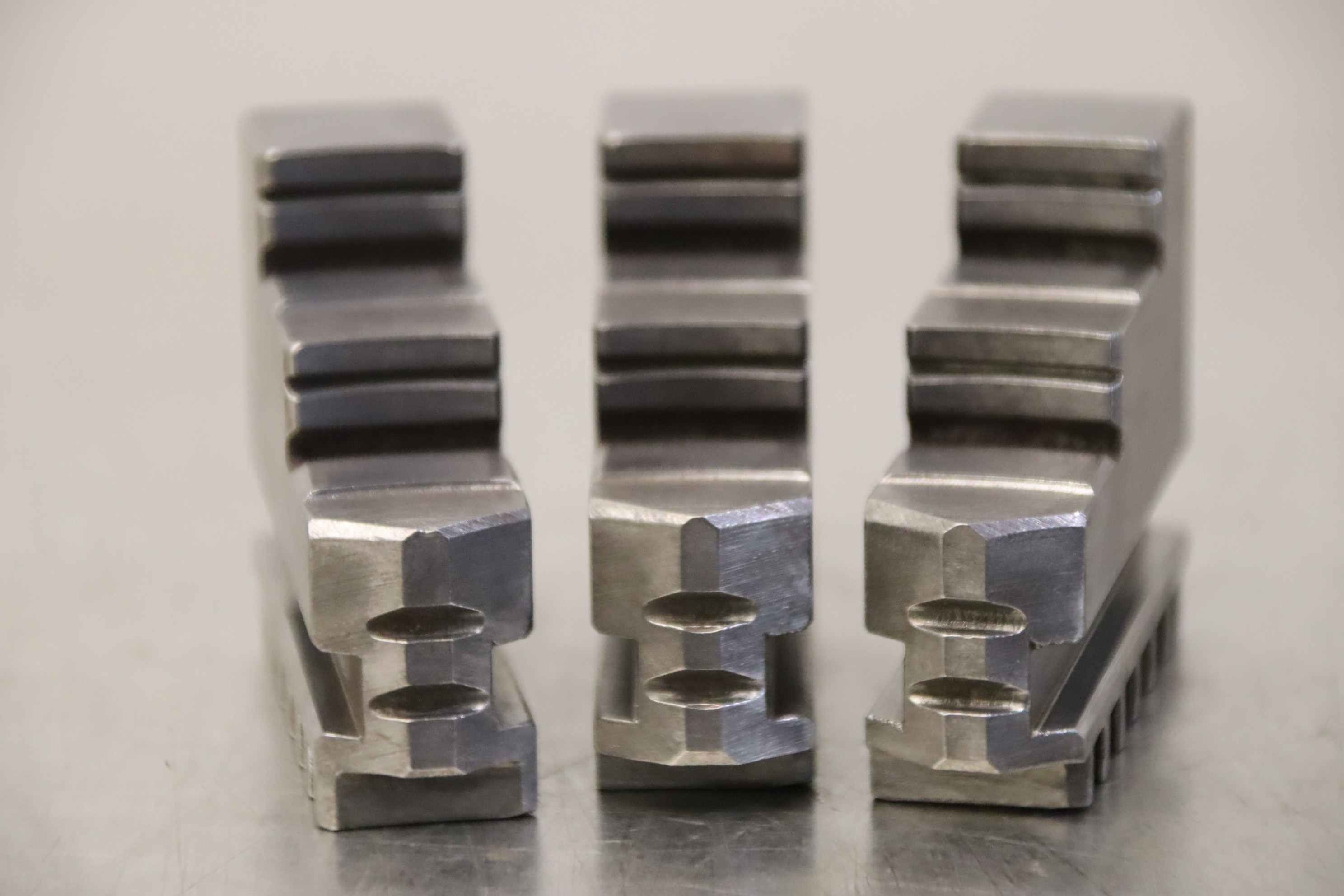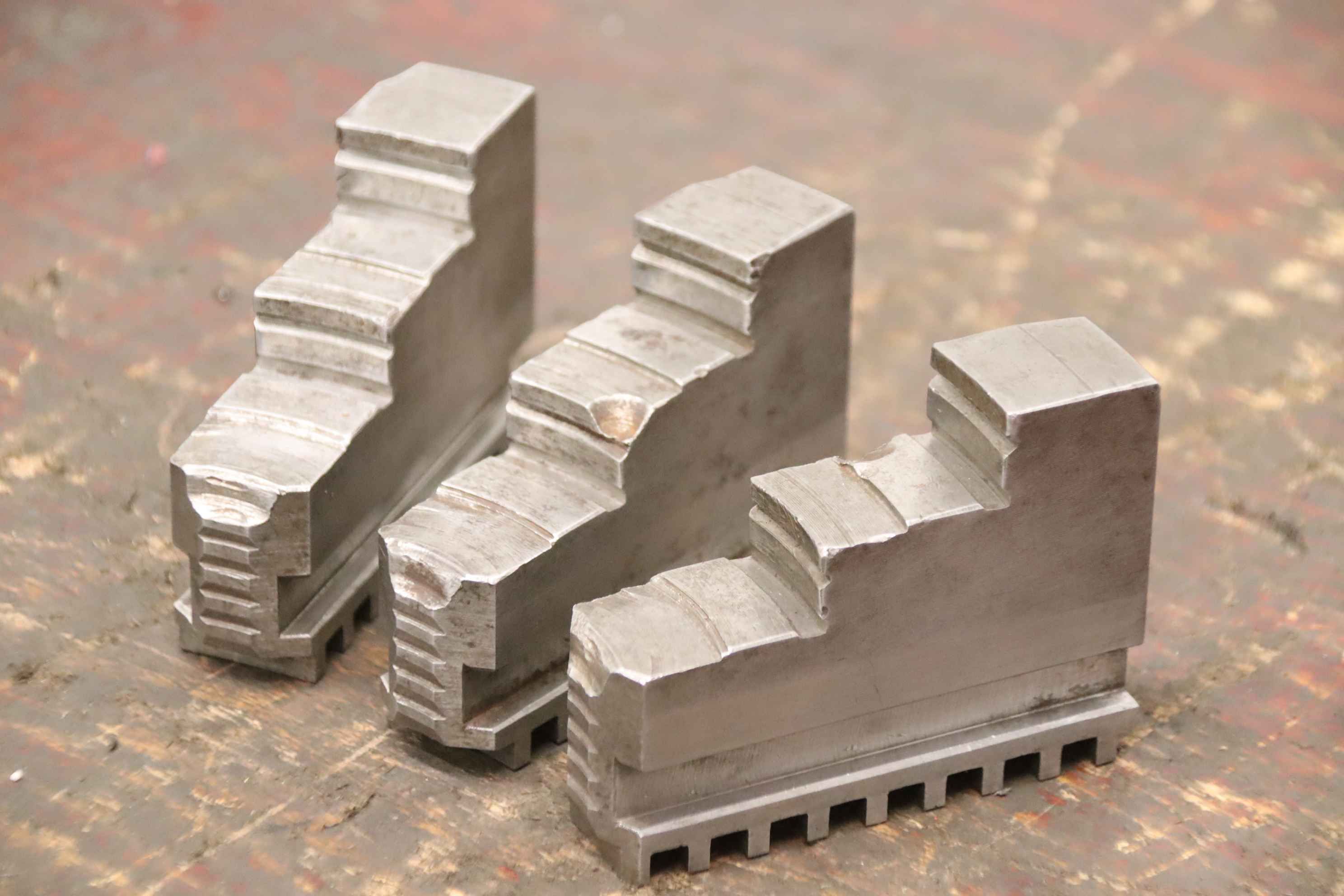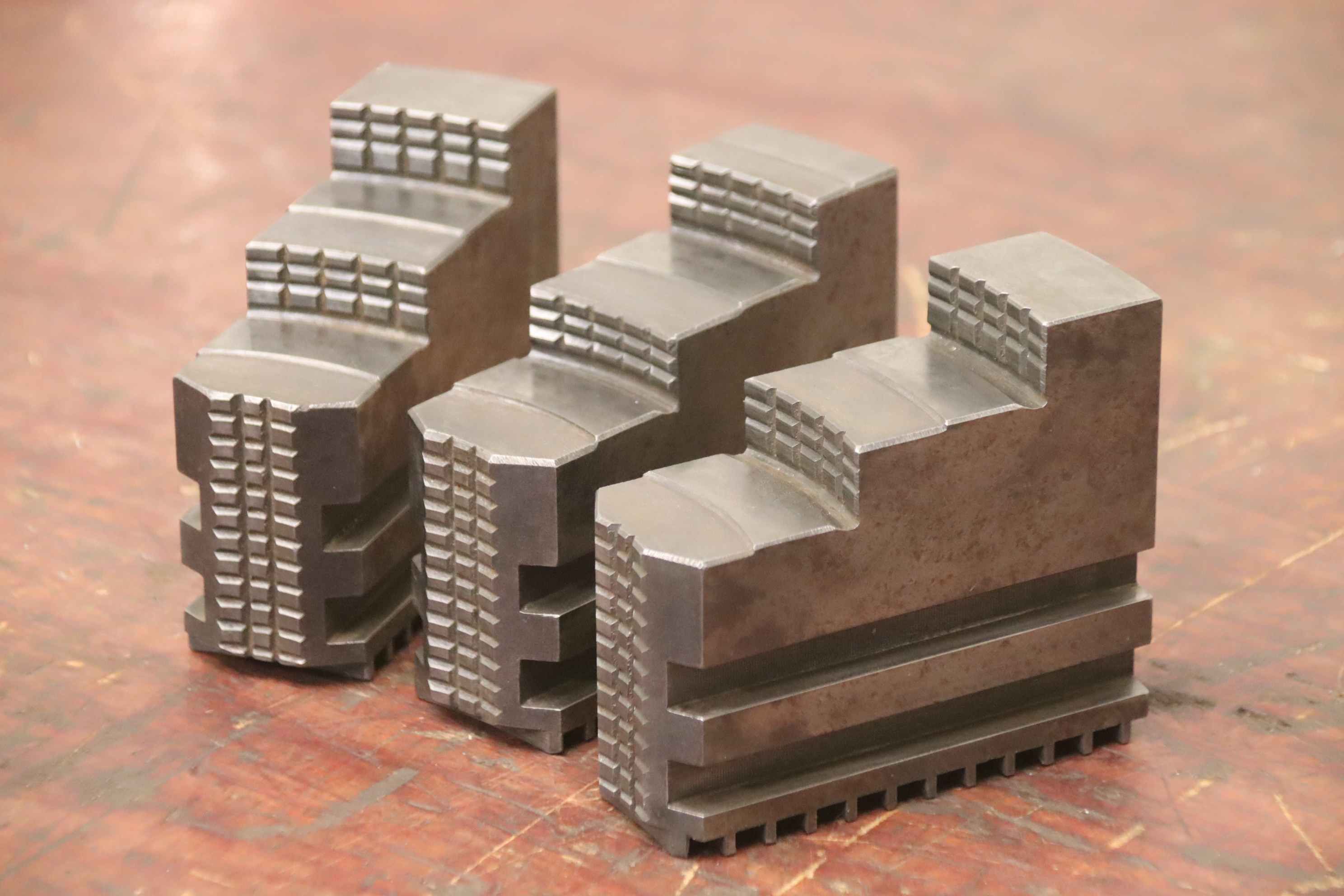 Interchangeable jaws, top jaws, three-jaw chucks, segment jaws, clamping jaws, step block jaws, step top jaws, block jaws, base jaws, 4-jaw set-Top jaws: turning jaw set, 4-piece hard-Jaw width: 38 mm-Dimensions: see photo techn. drawing-Dimensions: 130/150 / H90 mm-Total weight: 8.8 kg