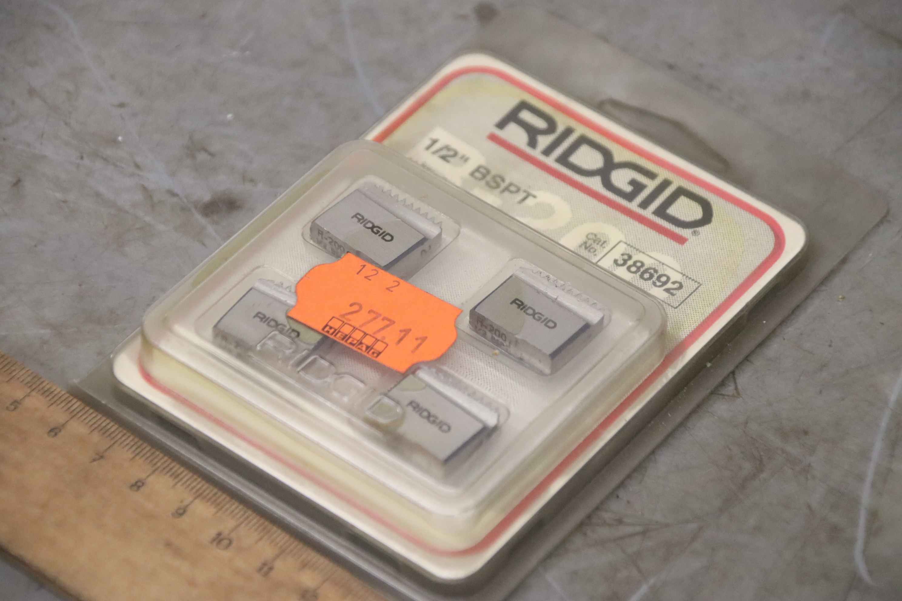Threading dies, replacement dies, threading head with chaser dies, threading stock, threading machine, pipe thread cutter-Manufacturer: Ridgid, thread dies set unused original packaging-Type: 1/2 BSPT-Number: 2 sets available-Price: per set-Weight: 0.1kg/set