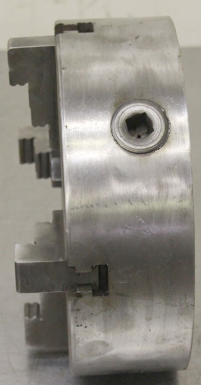 Four-jaw chuck, four-jaw lathe chuck -Chuck size: Ø 250 mm -Bolt circle: Ø 230 mm -Recess:Ø 210 mm -Passage: Ø 80 mm -Scope of delivery: as per pictures, without additional jaws -Weight: 19 kg
