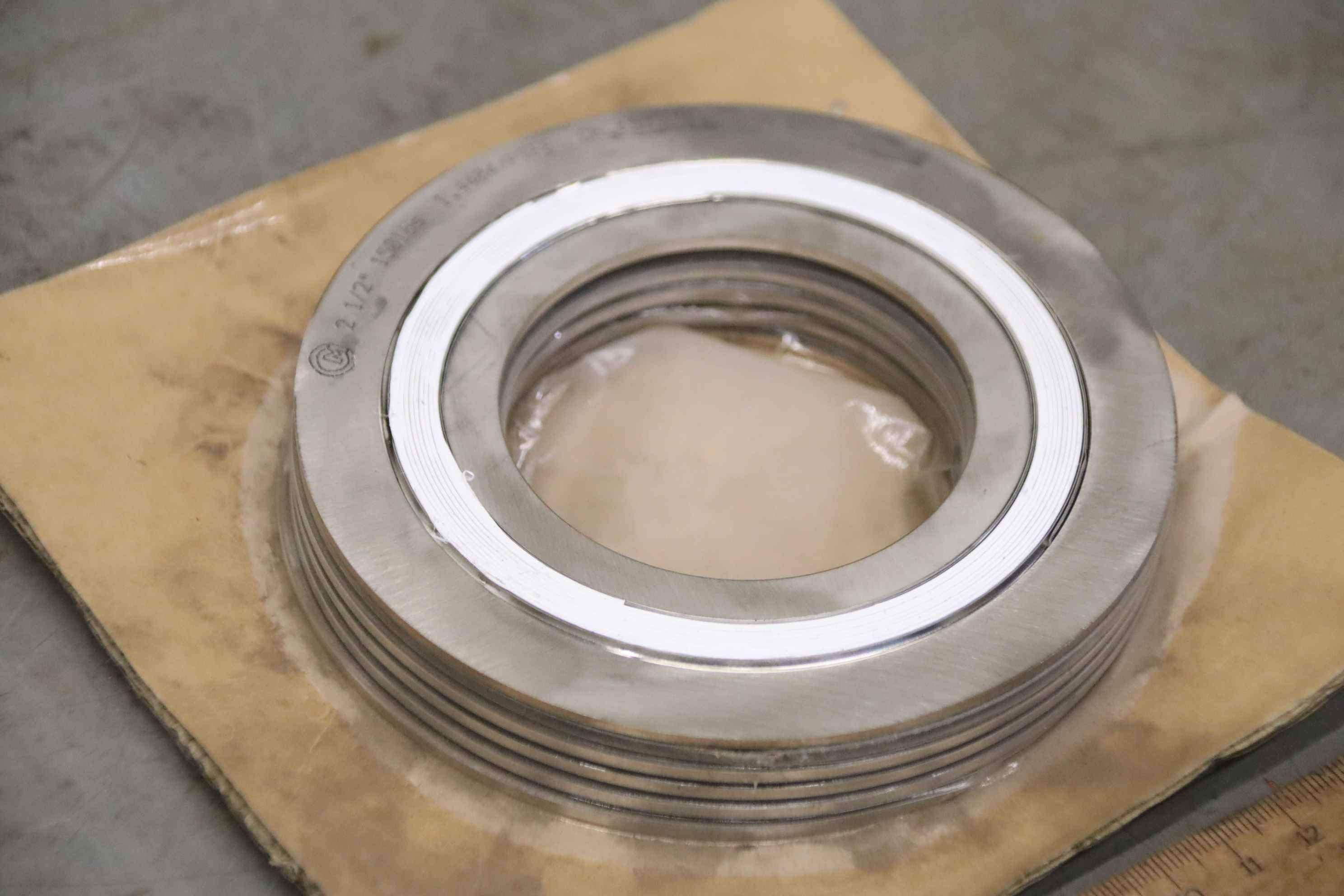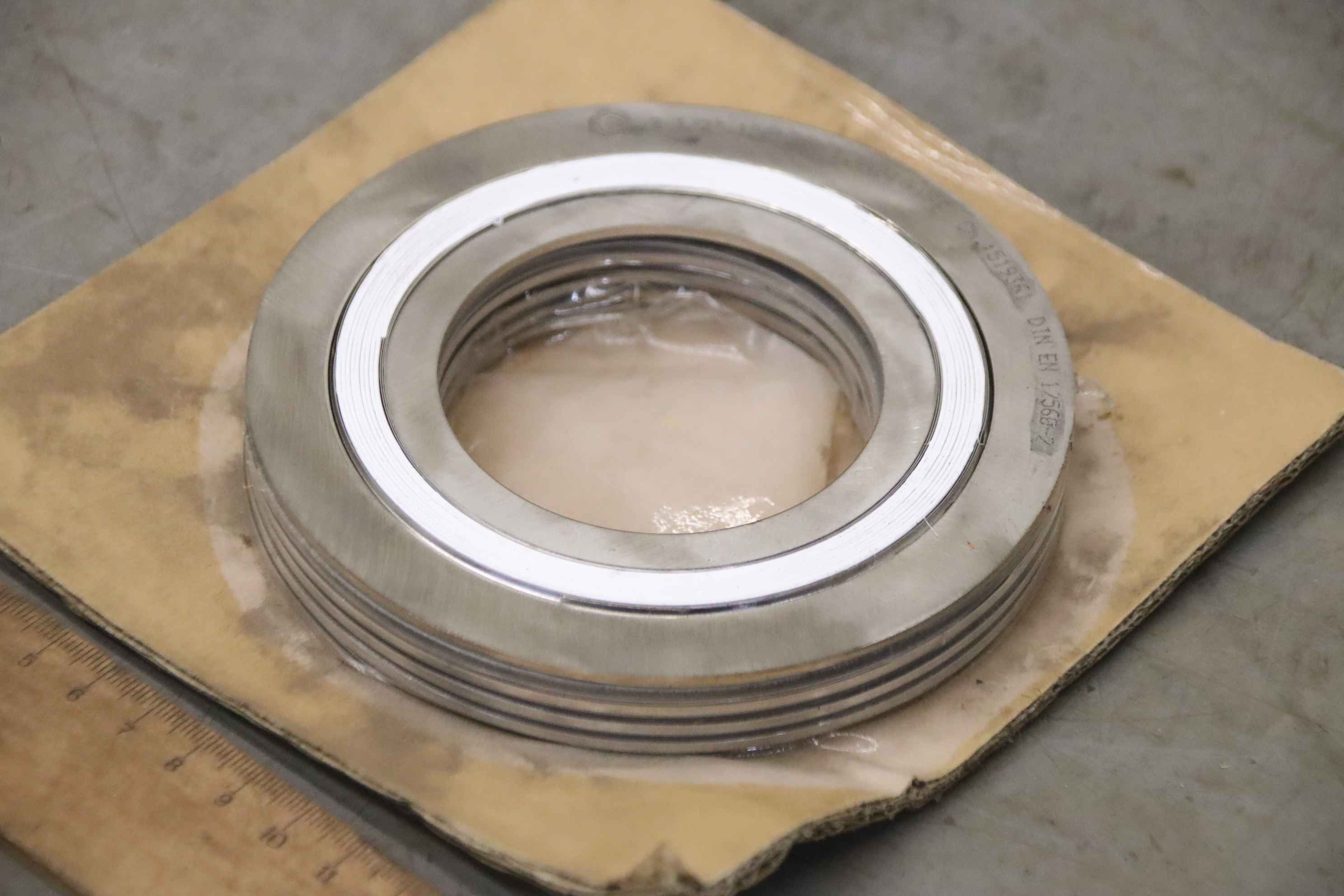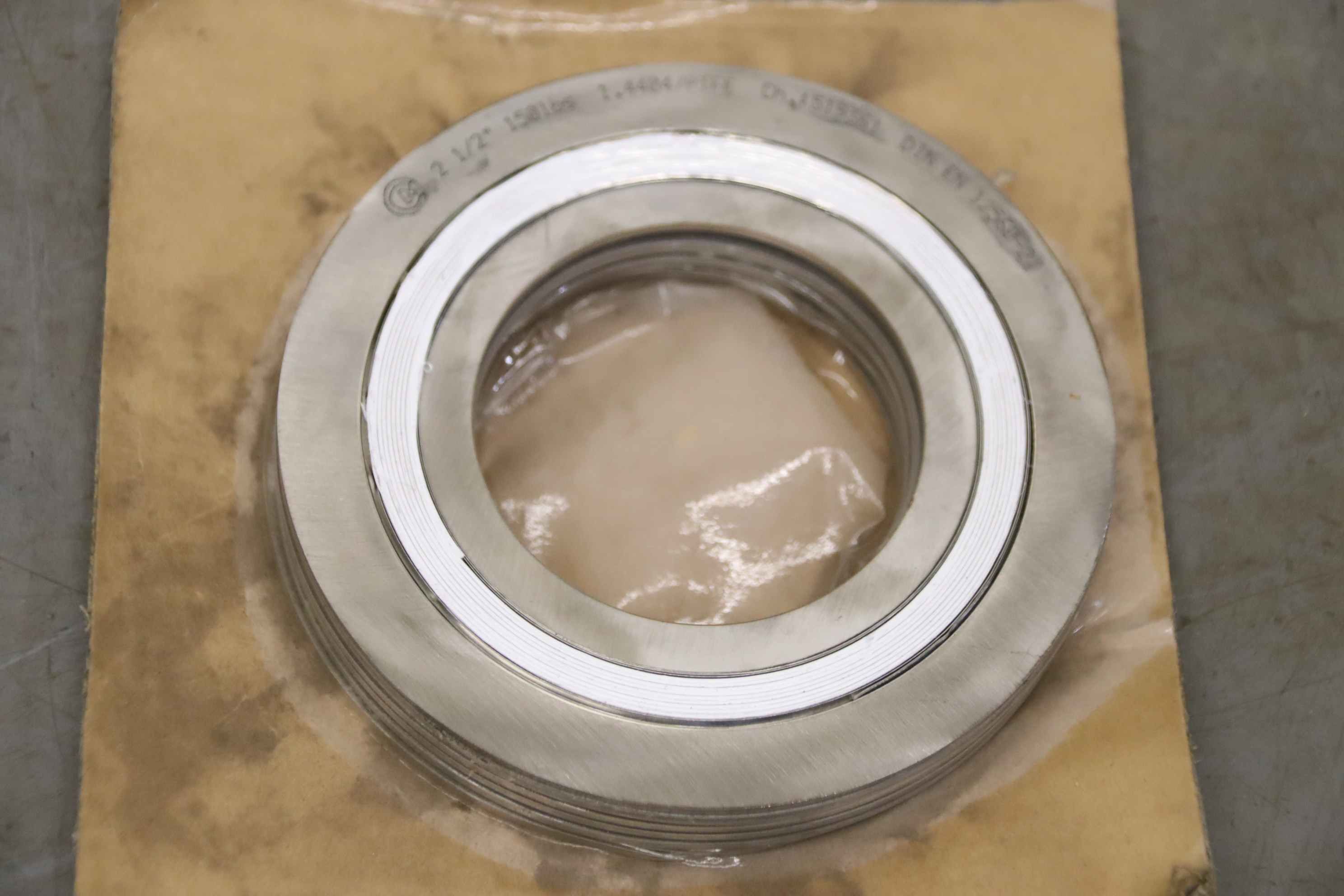 Spiral wound gasket, labyrinth body gasket, flange gasket-Spiral seal: Flange seal according to DIN EN 12560-2 5 pieces/package-Type: 2 1/2 150lbs 1.4404/PTFE-Dimension: Ø124 x 2mm-Price: complete-Total weight: 0.7 kg