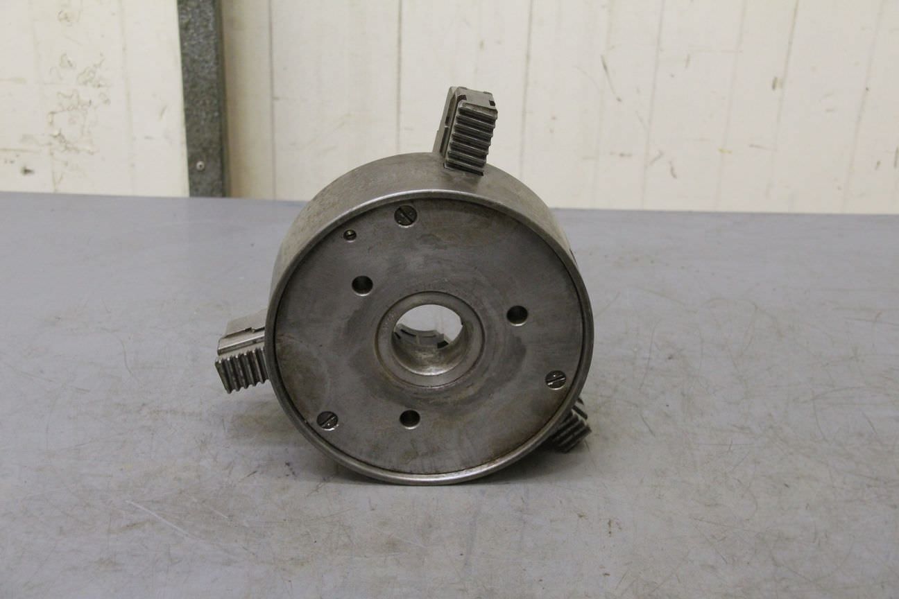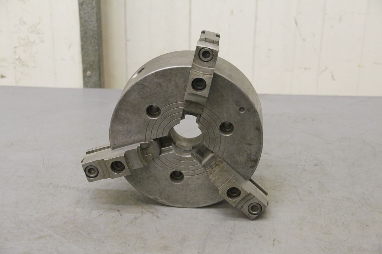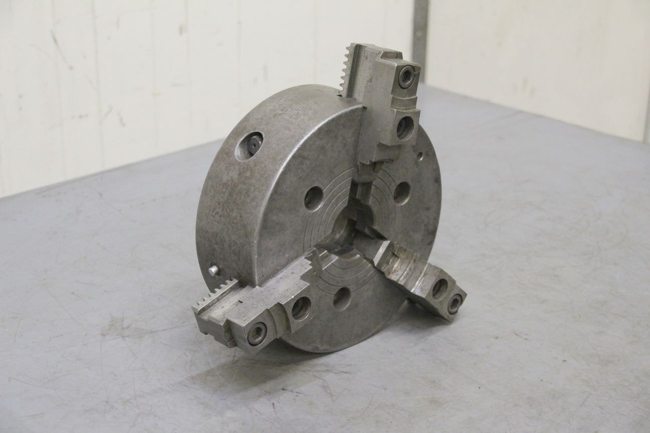 three-jaw chuck, three-jaw lathe chuck -Chuck size: Ø 240 mm -Short taper holder: Short taper 6 Ø 105 -Passage: Ø 77 mm -one set: hard interchangeable jaws -Weight: 28 kg