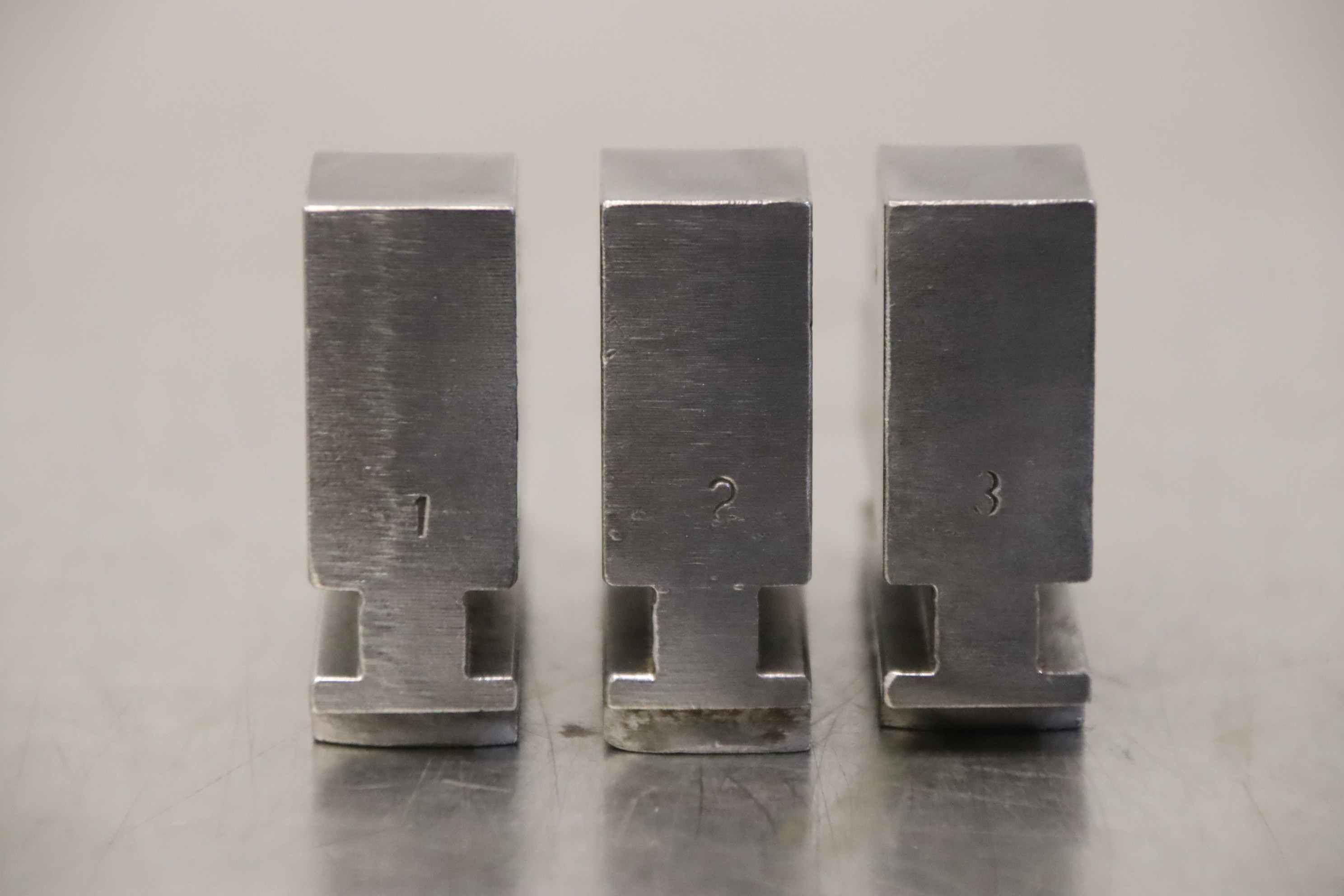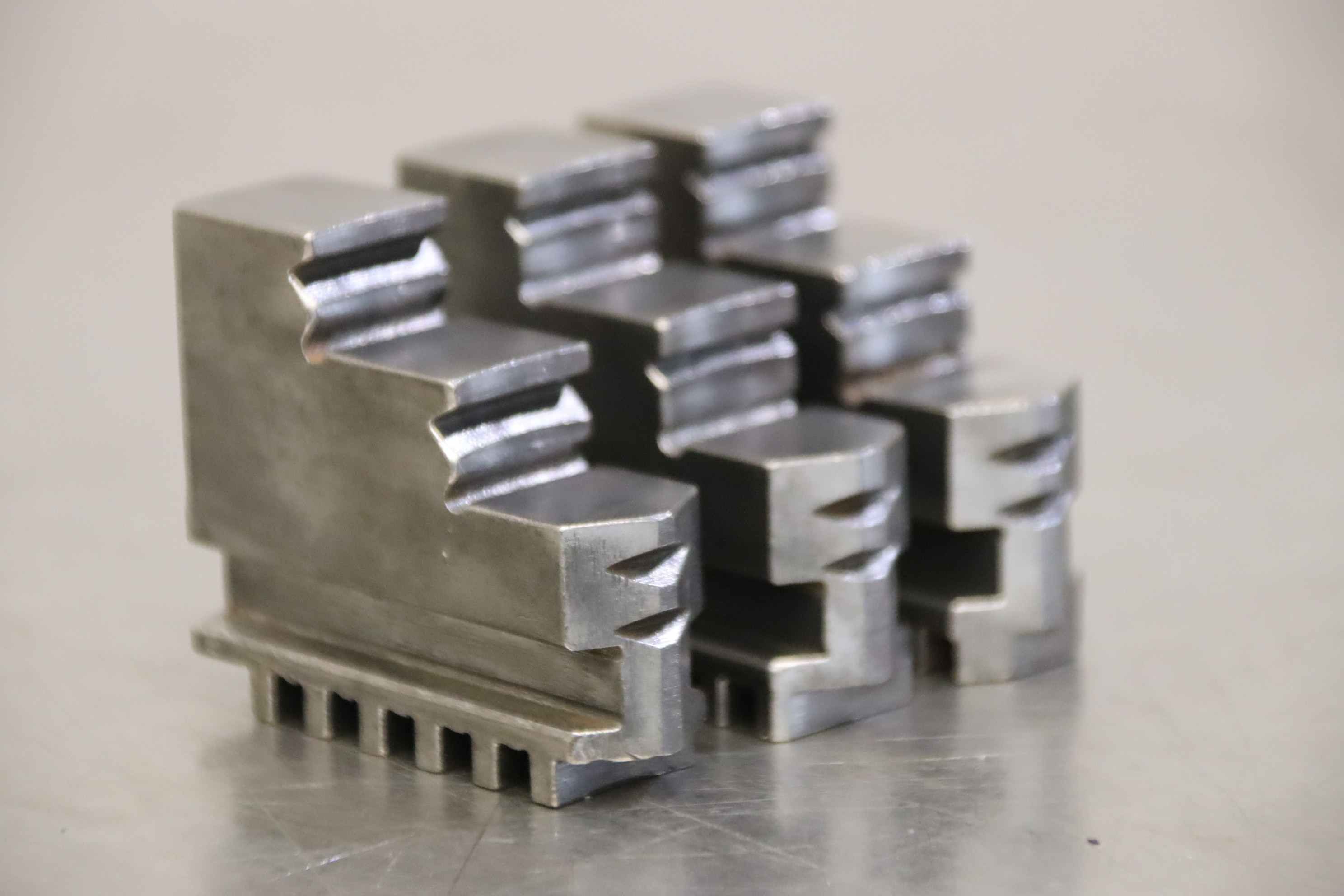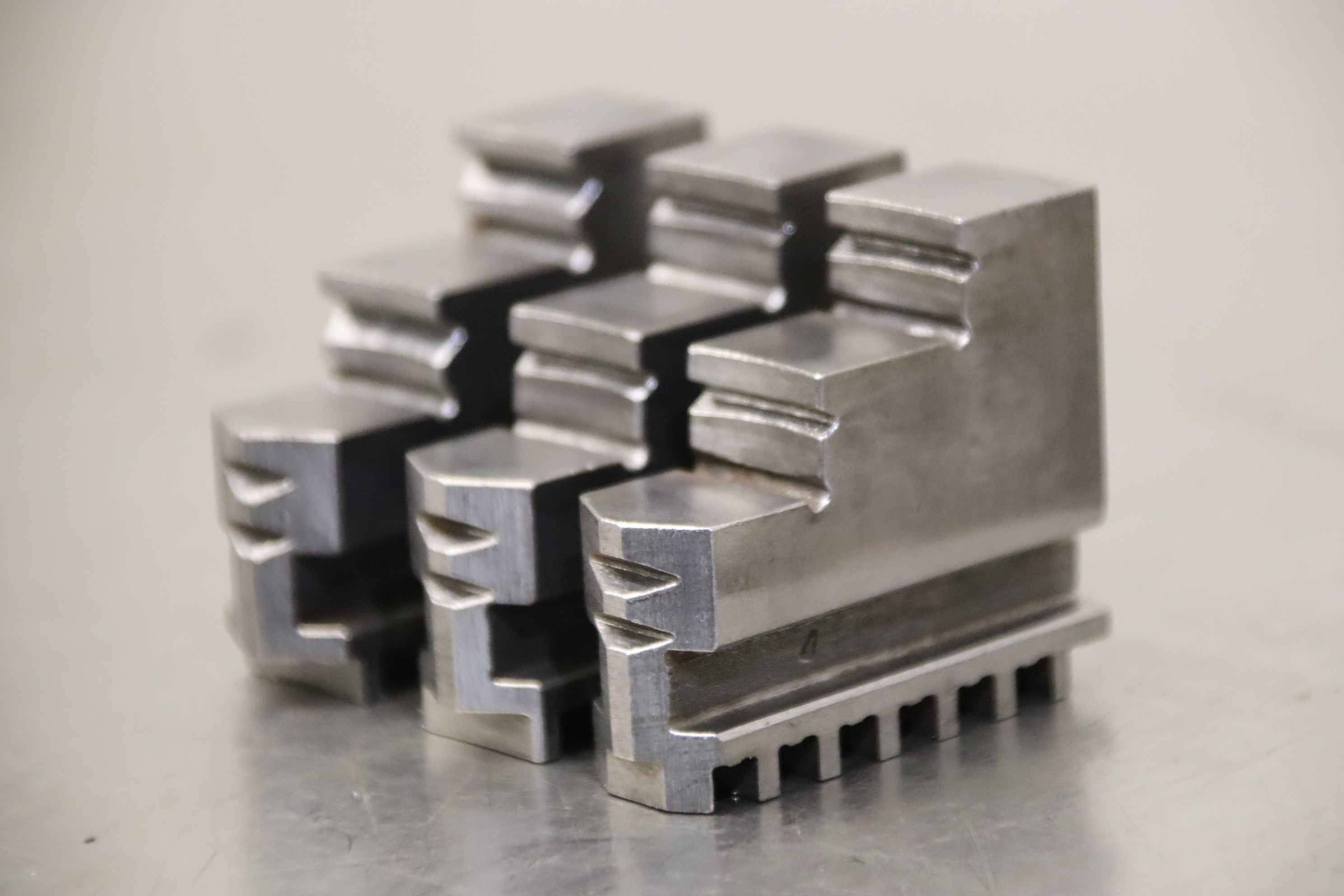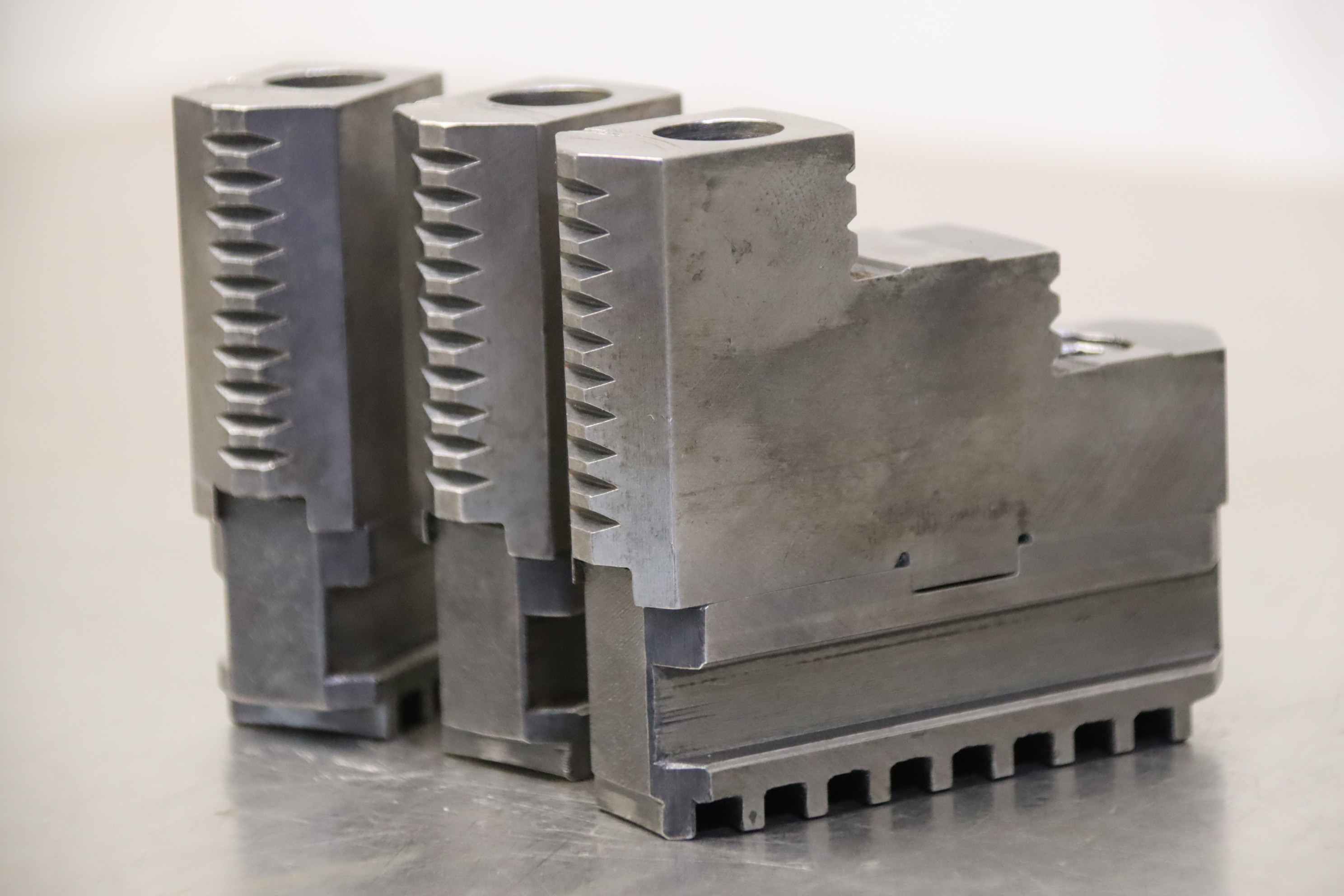 Interchangeable jaws, top jaws, three-jaw chuck, segment jaws, clamping jaws, stepped block jaws, stepped top jaws, block jaws, base jaws, 4-jaw set-Top jaws: Jaw set for three-jaw lathe chucks, hard-Jaw width: 16 mm-Dimensions: see photo techn. drawing-Total dimensions: 51/48/H45 mm-Total weight: 0,5 kg
