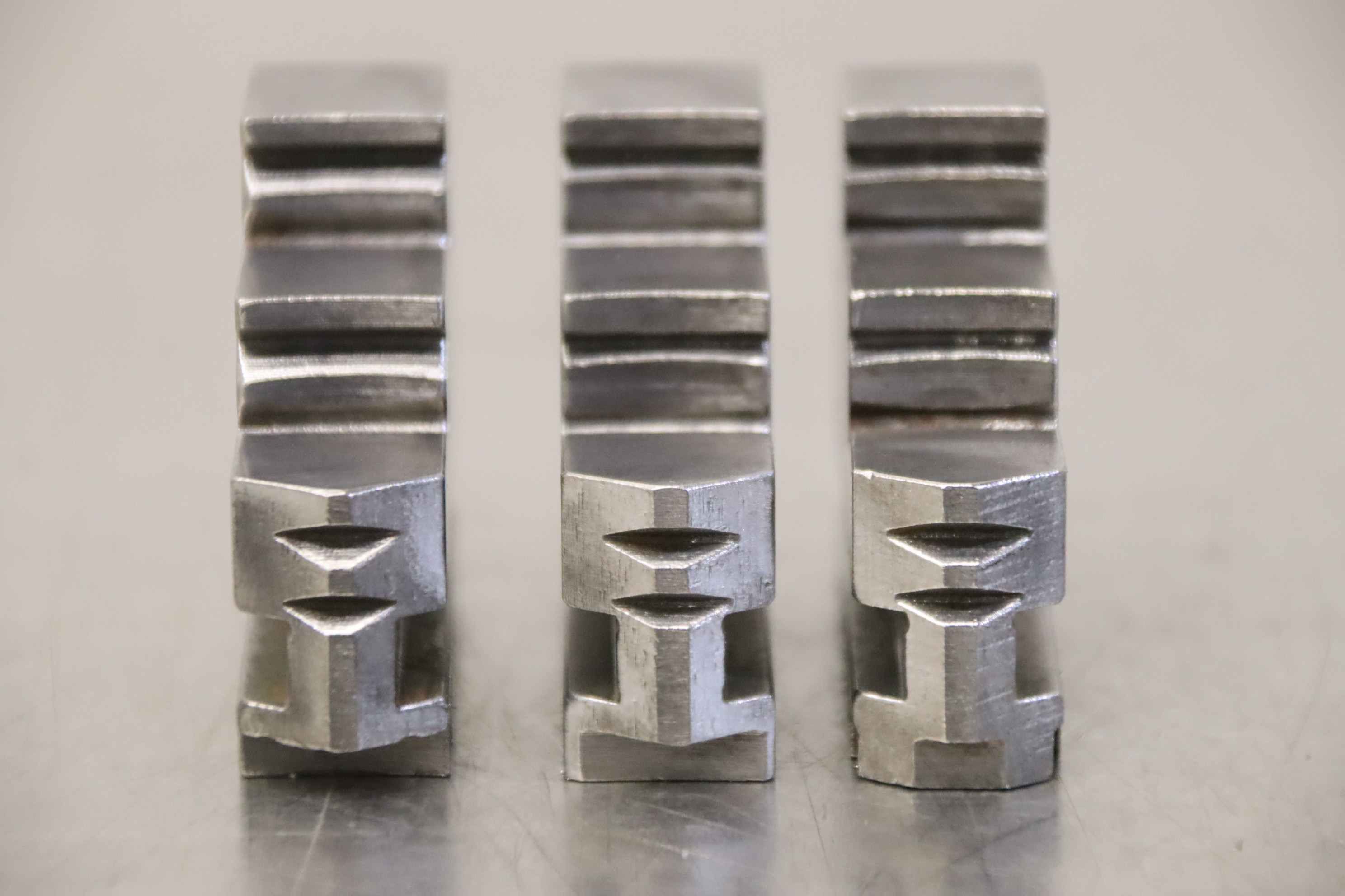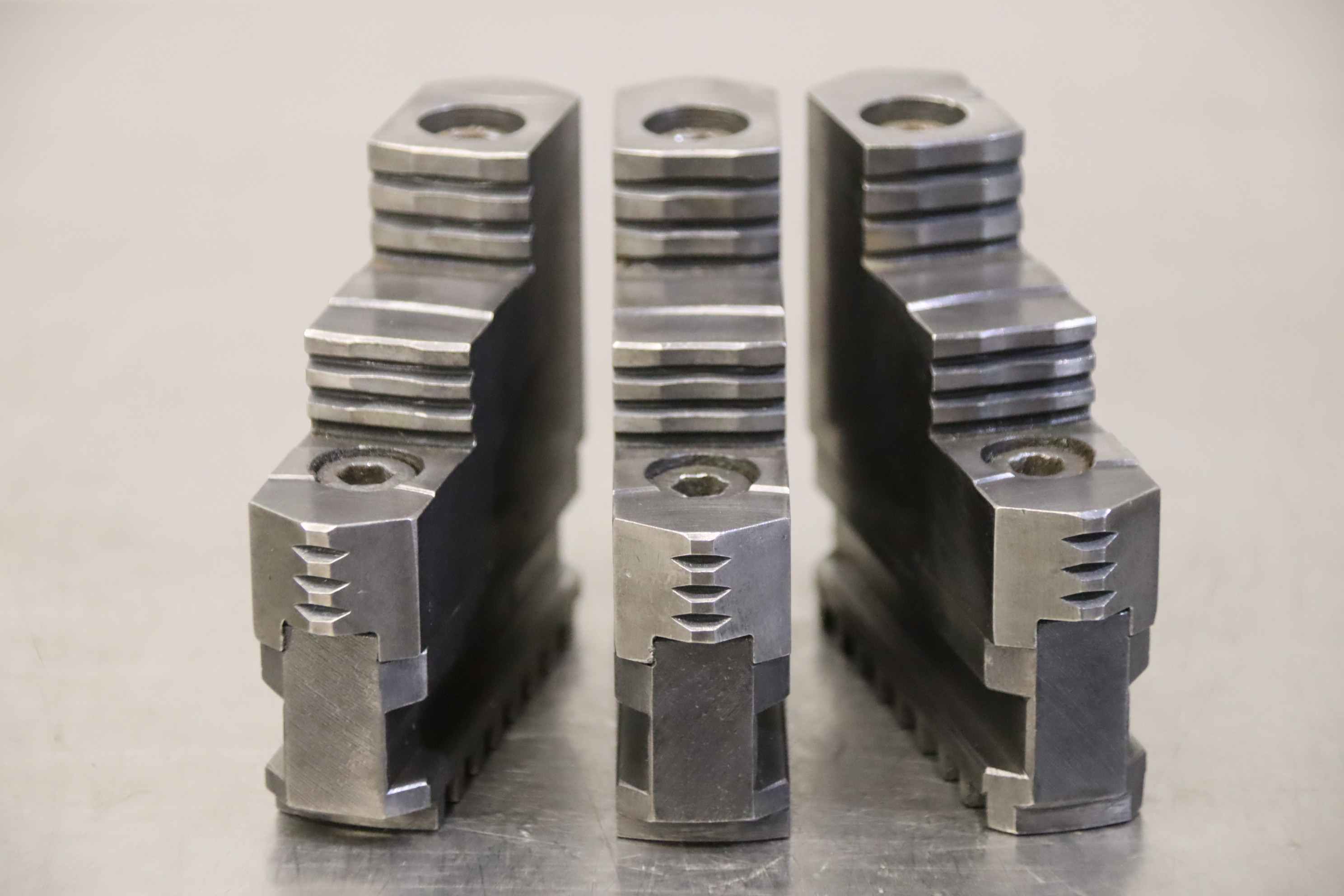 Interchangeable jaws, top jaws, three-jaw chucks, segment jaws, clamping jaws, step block jaws, step top jaws, block jaws, base jaws, 4-jaw set-Top jaws: Jaw set for three-jaw lathe chucks, hard-Jaw width: 21 mm-Dimensions: see photo technical. drawing-Total dimensions: 82/63/H74 mm -Total weight: 1.9 kg