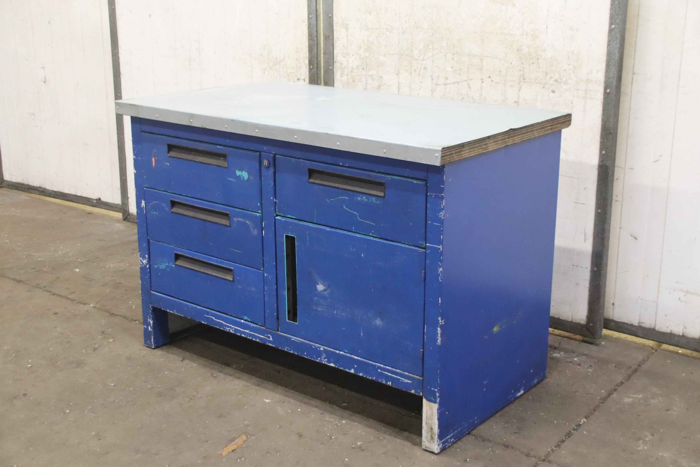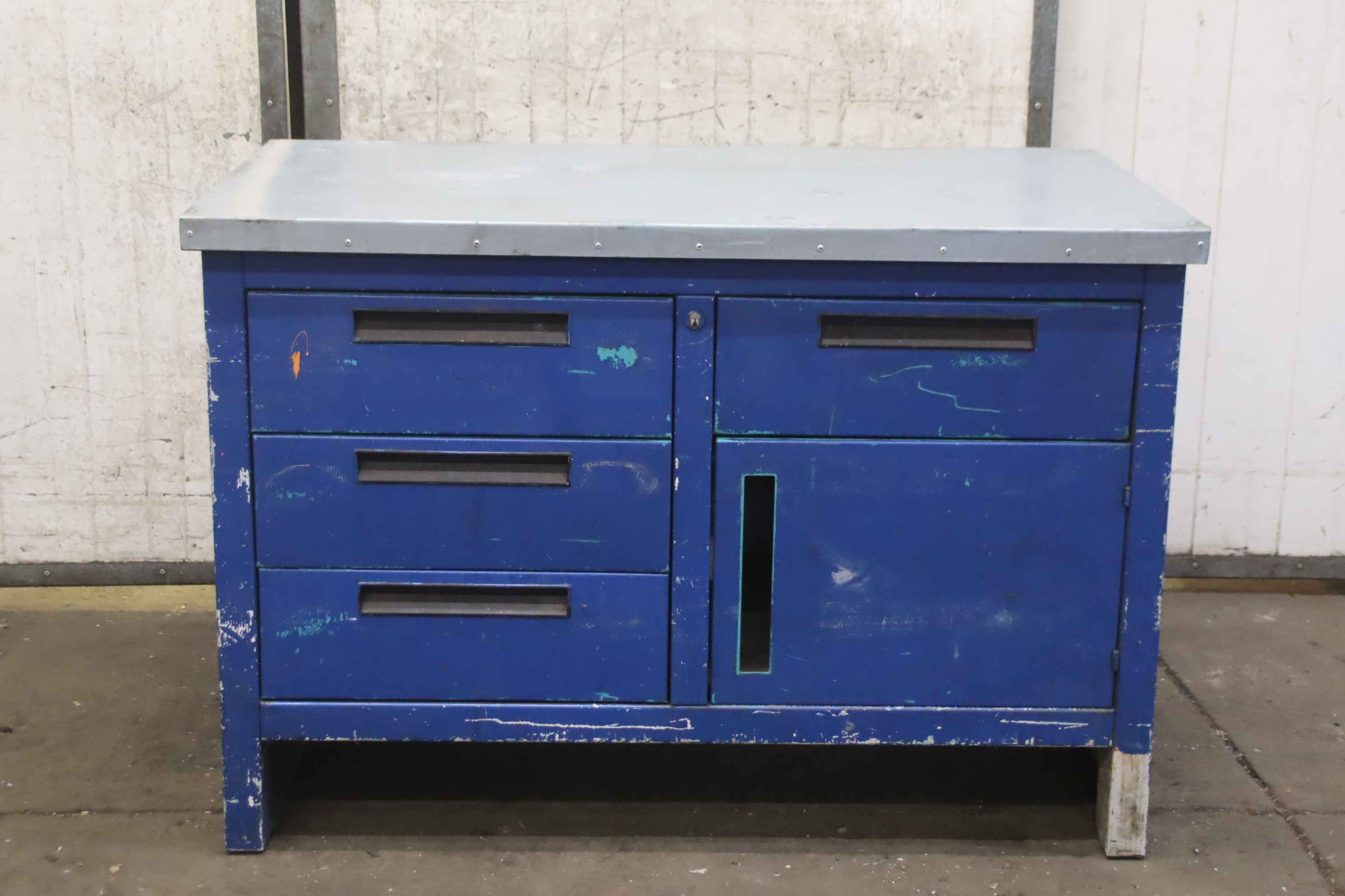 Workbench, work table, assembly bench-Workbench: with drawers/cabinet door, solid design-Width: 1240mm-Depth: 700mm-Height: 850mm-Drawers: 3-Cabinet door: 1-Weight: 102 kg