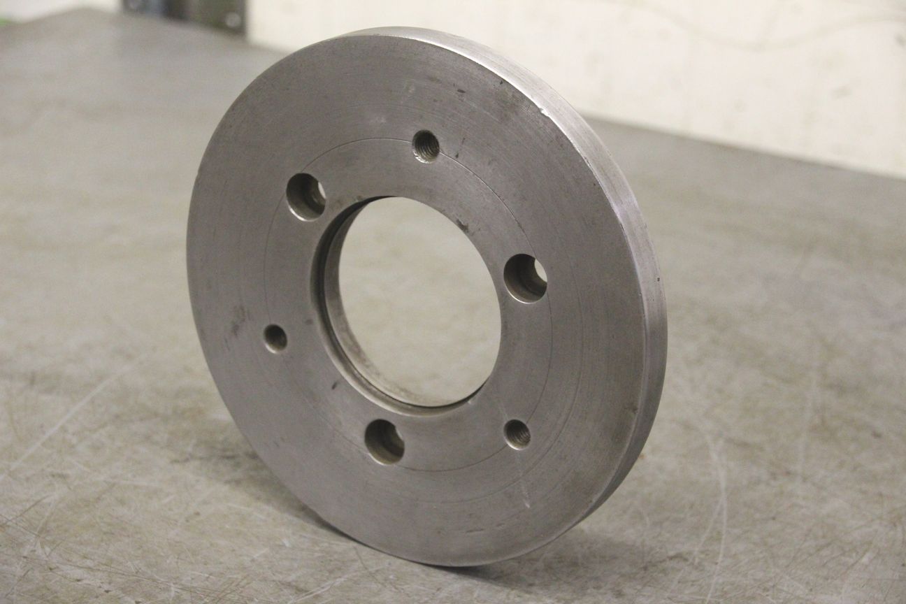 Chuck flange, flange mount, lathe chuck flange, driving flange-Chuck flange for: three-jaw chuck, four-jaw chuck, face plate-Outer diameter: 215 mm-Hole circle: Ø 120/Ø 12 mm-Hole circle: Ø 135/M12-Dimensions: Ø 215/H19 mm-Weight: 4.4 kg